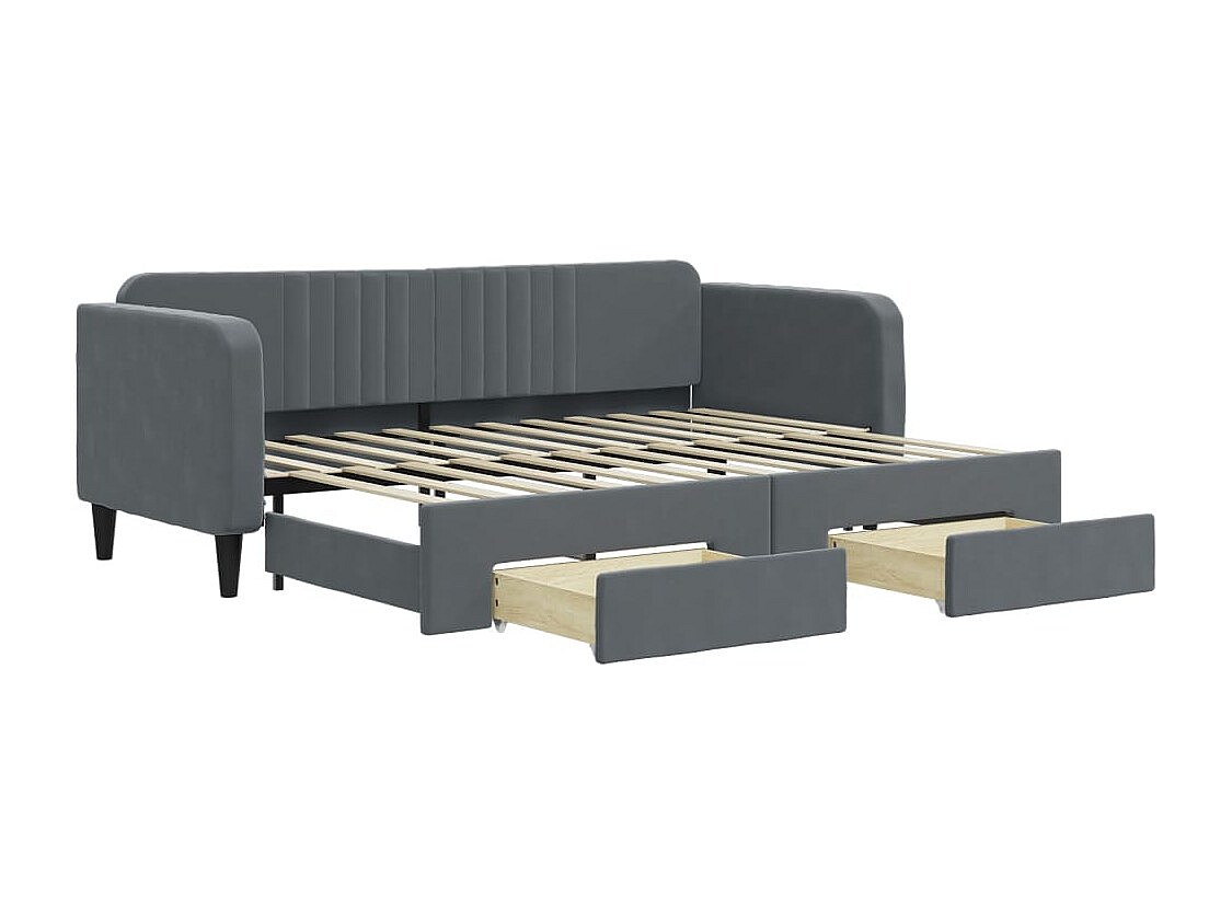 Sofá cama nido con cajones terciopelo gris oscuro 80x200 cm