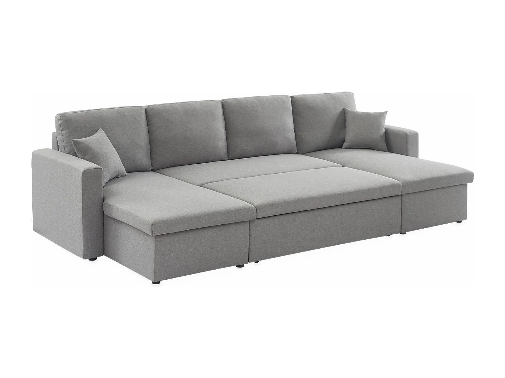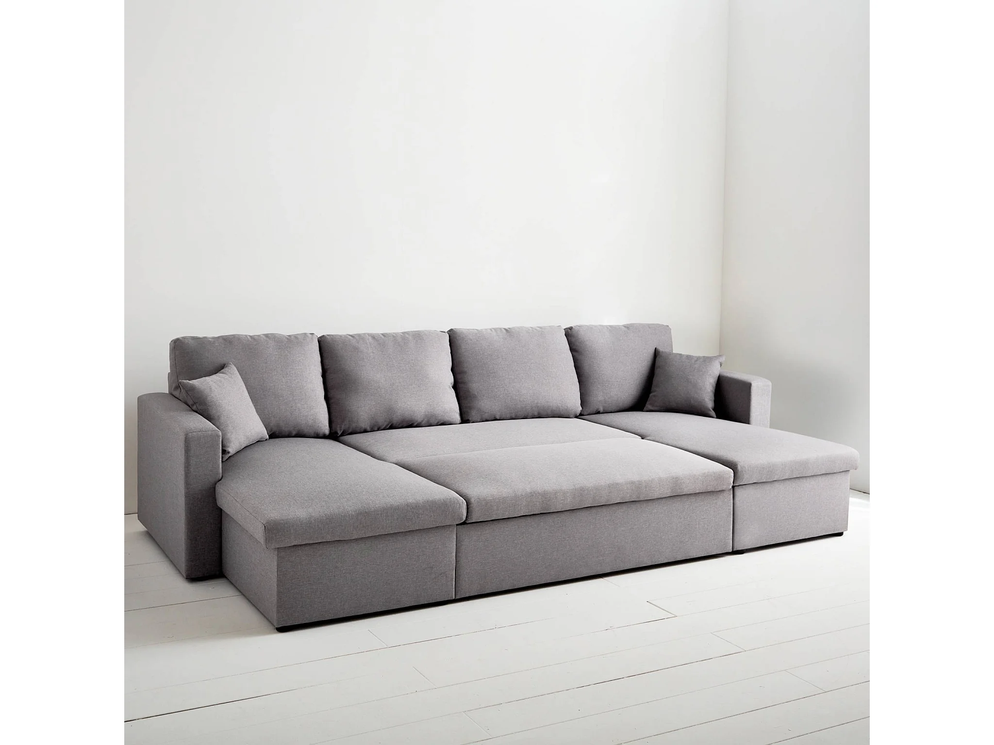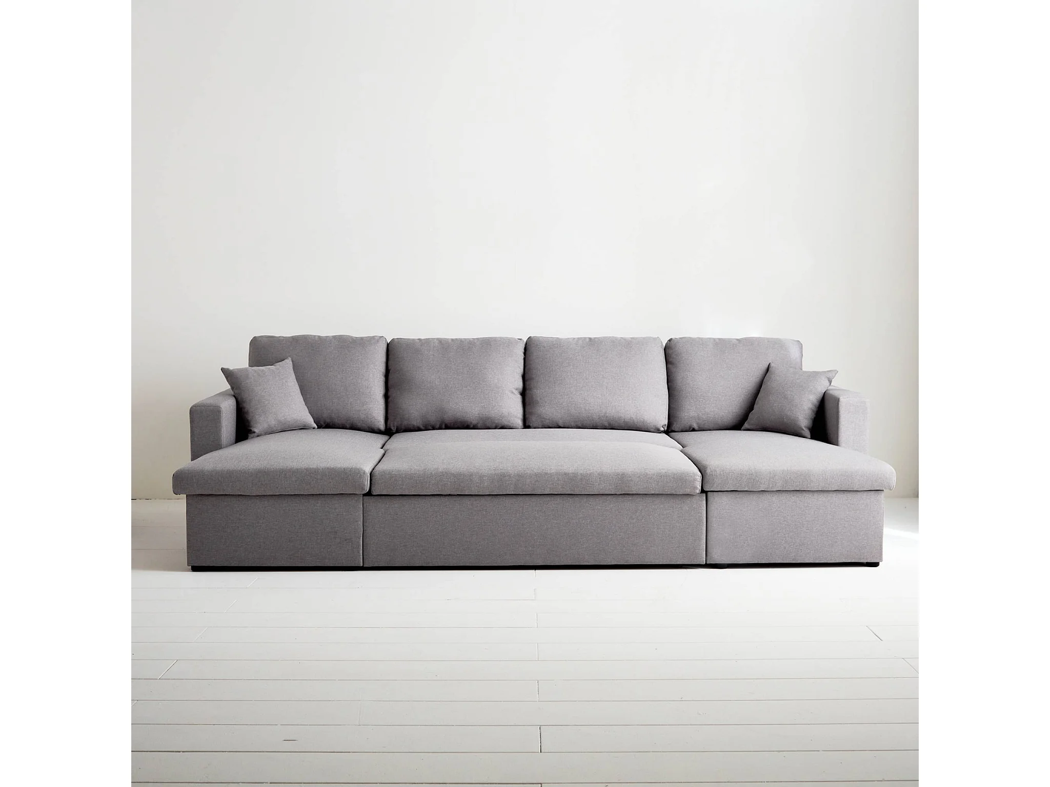 Sofá cama panorámico de 4 plazas en tela gris claro