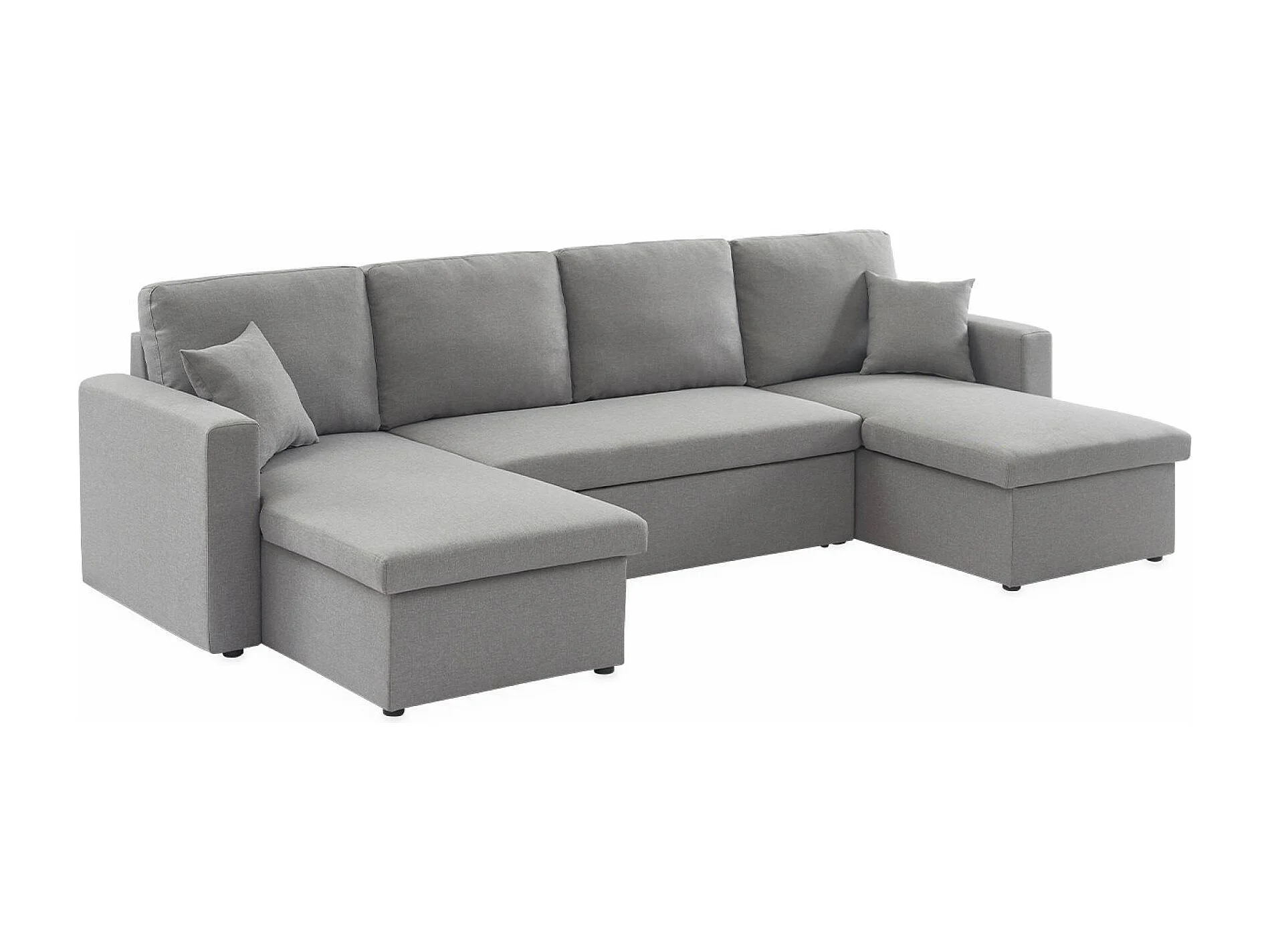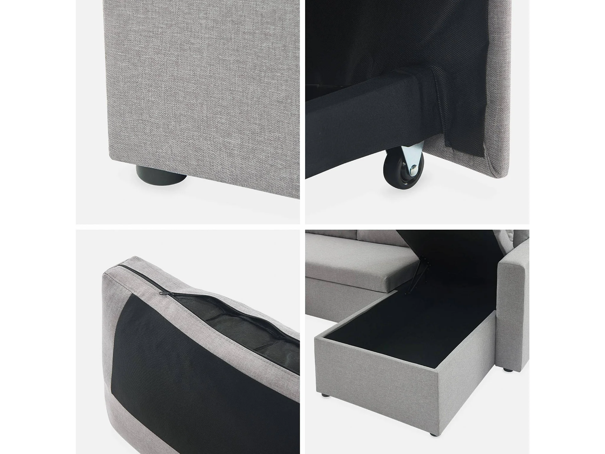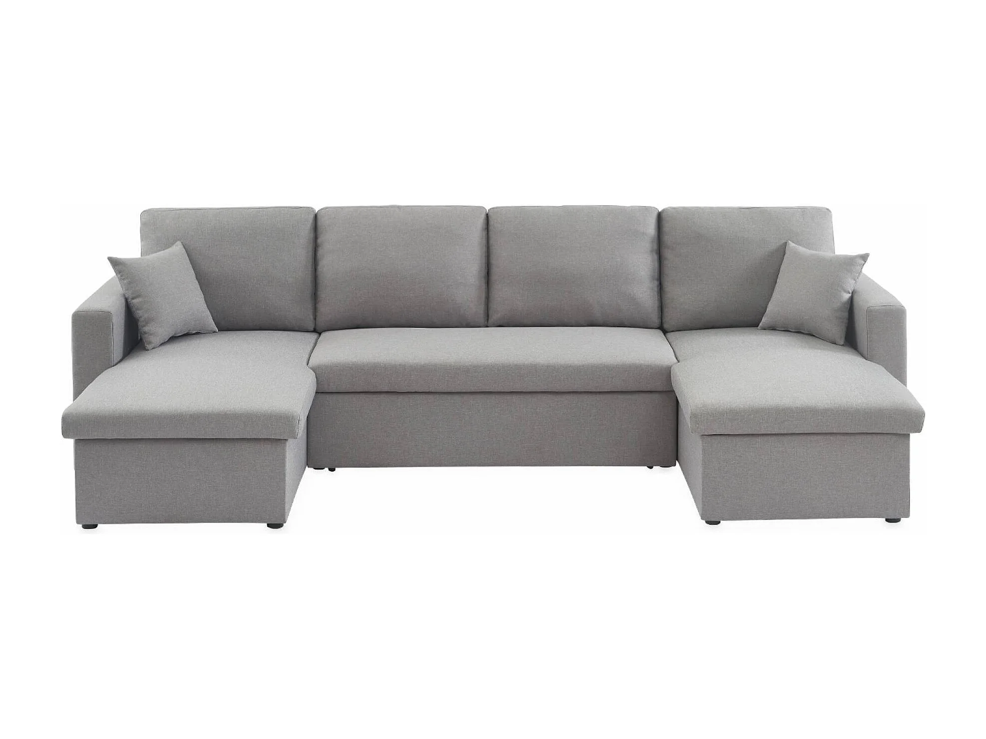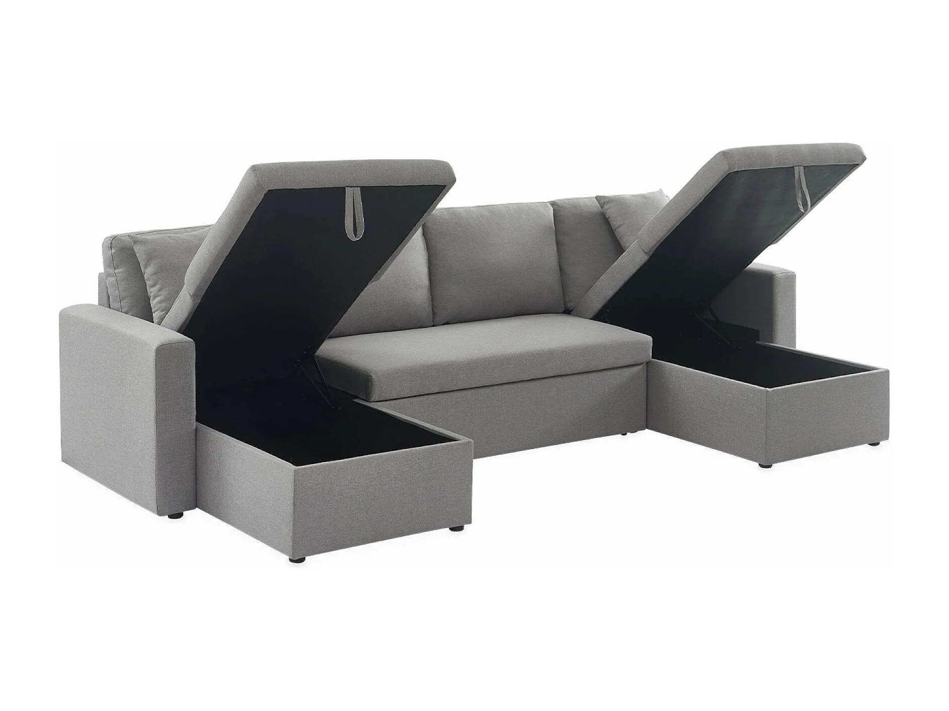 Sofá cama panorámico de 4 plazas en tela gris claro