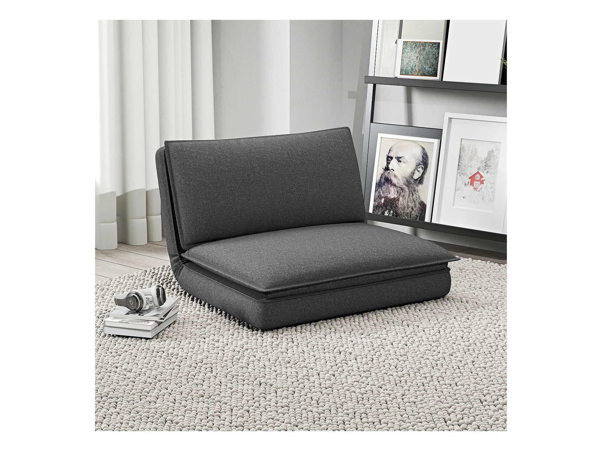 Sillón bajo plegable de lino gris con 6 posiciones, convertible en cama de salón 70x41x56 cm
