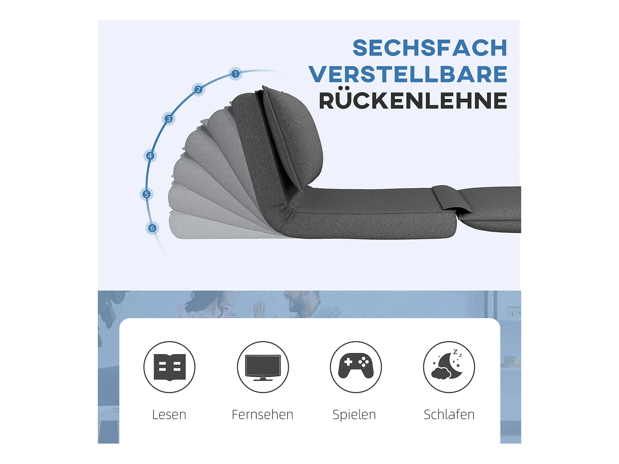 Sofá cama plegable 4 en 1 de lino Bodensofa con cojín gris oscuro, 150 kg