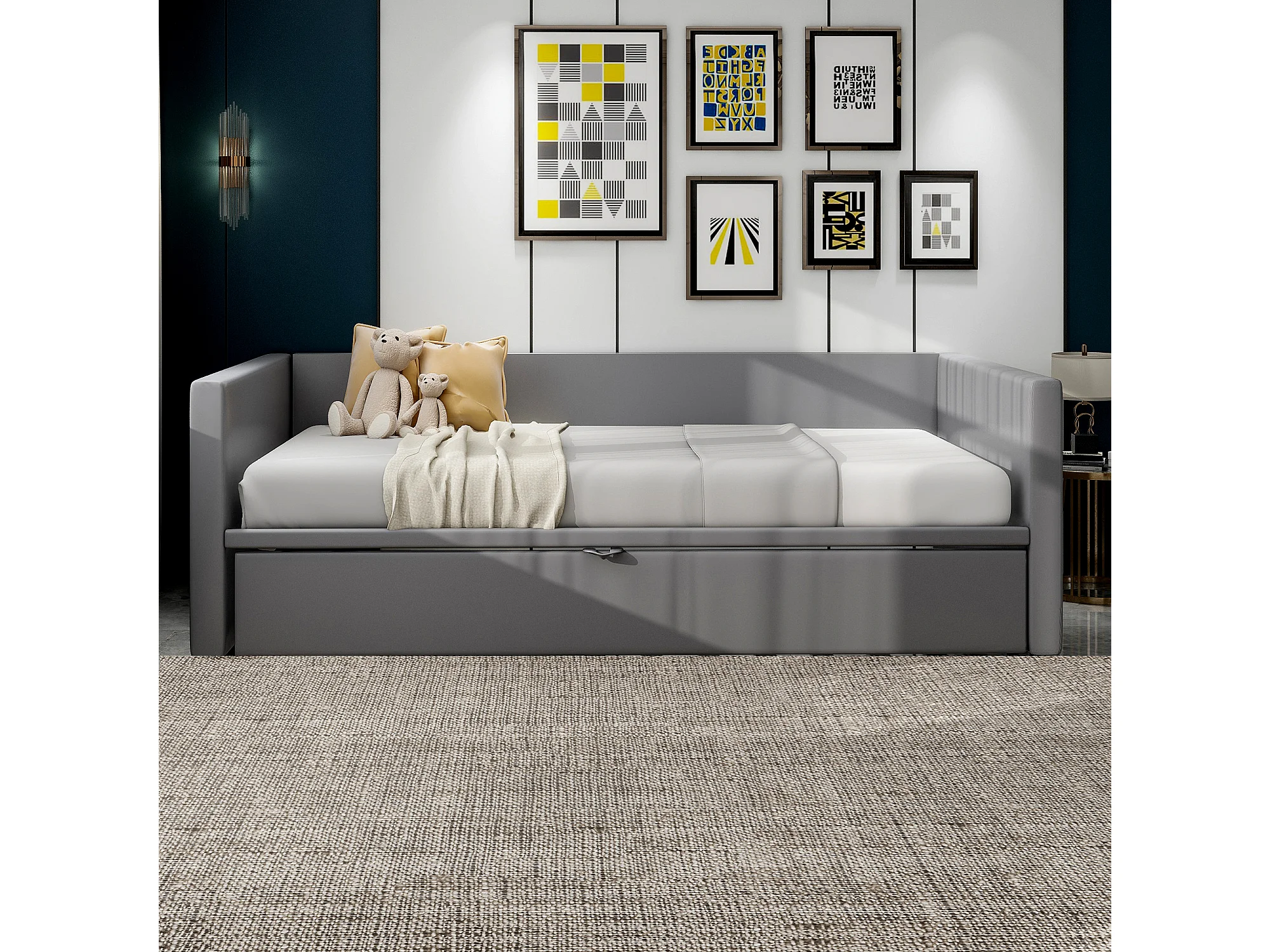 Sofá cama plegable tapizado 90/180x200 cm cama multifuncional en tejido de terciopelo - gris