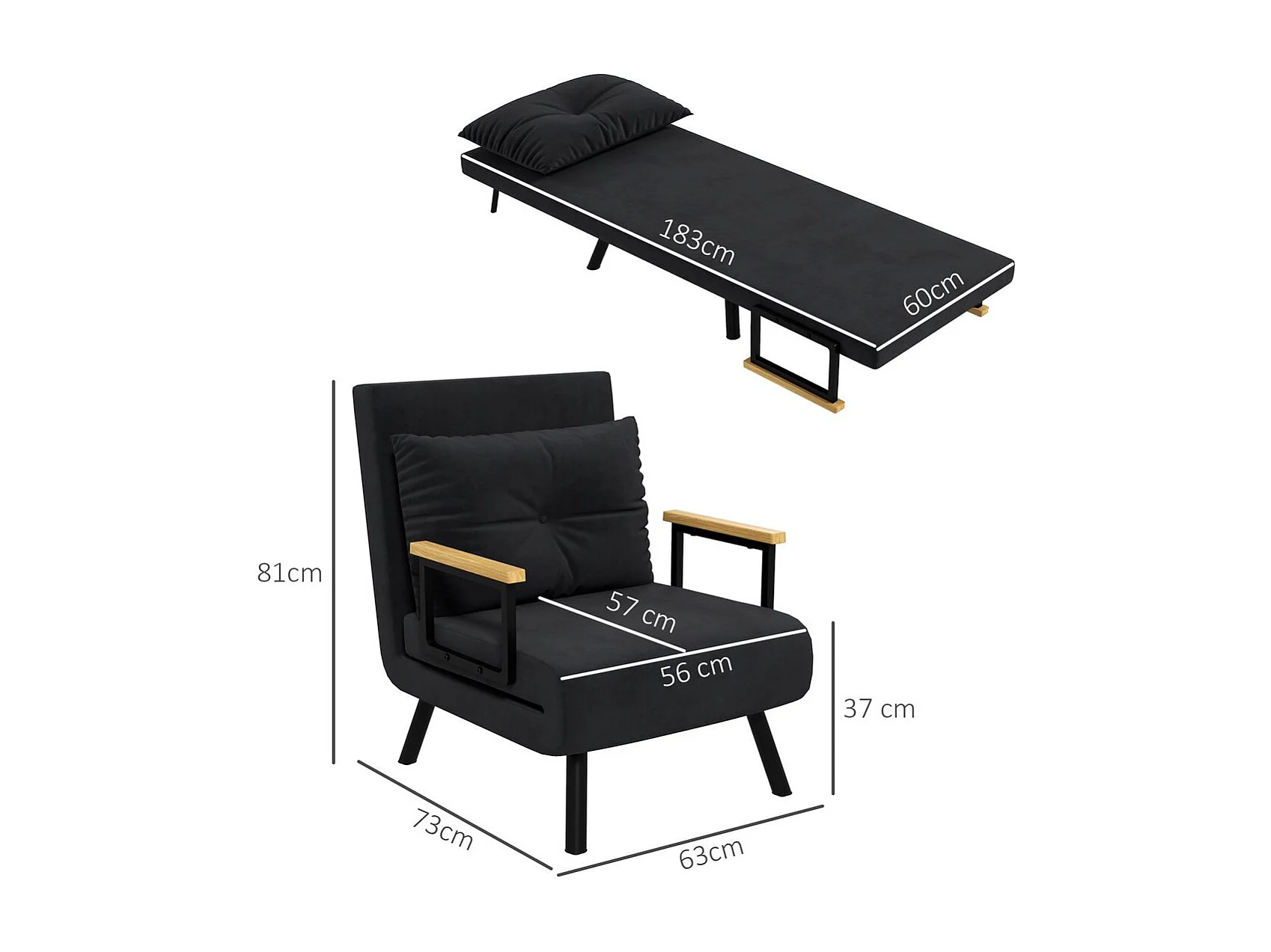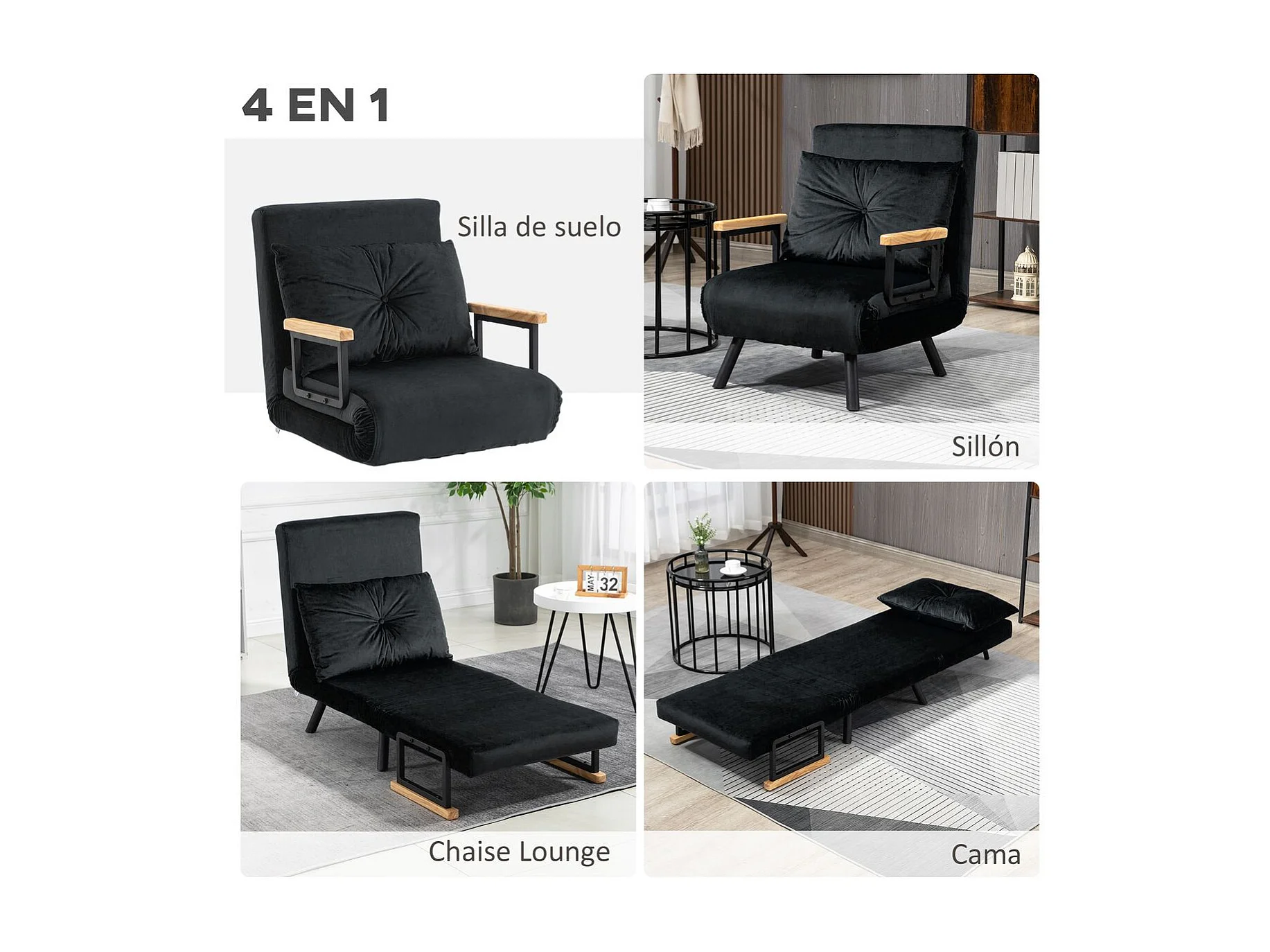 Sofá cama Prisma Homcom individual 4 en 1 negro 81x73x63cm