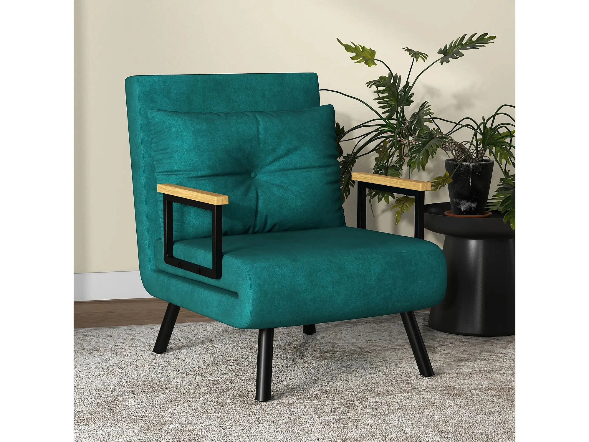 Sillón cama de terciopelo verde pino URIBIA