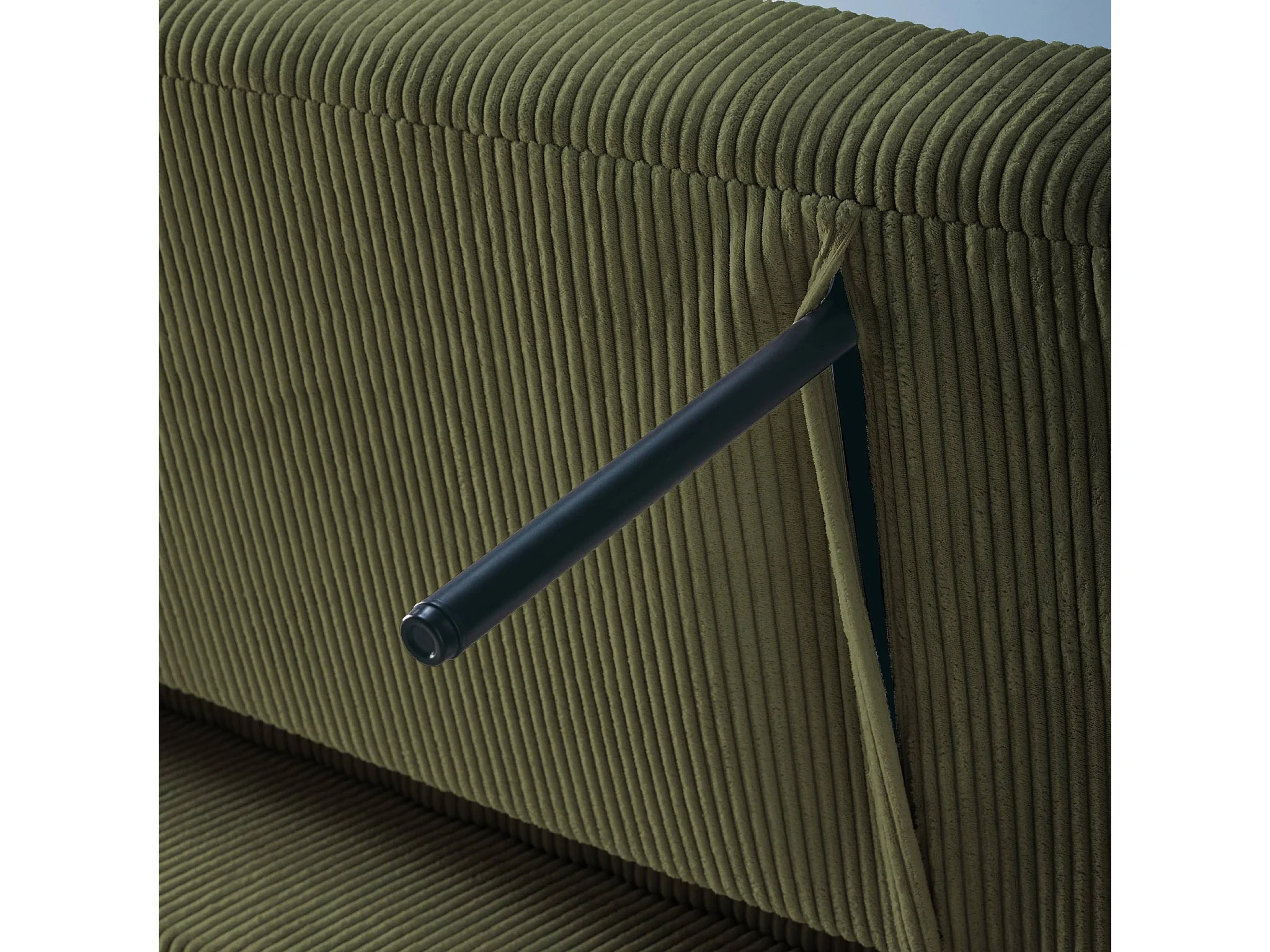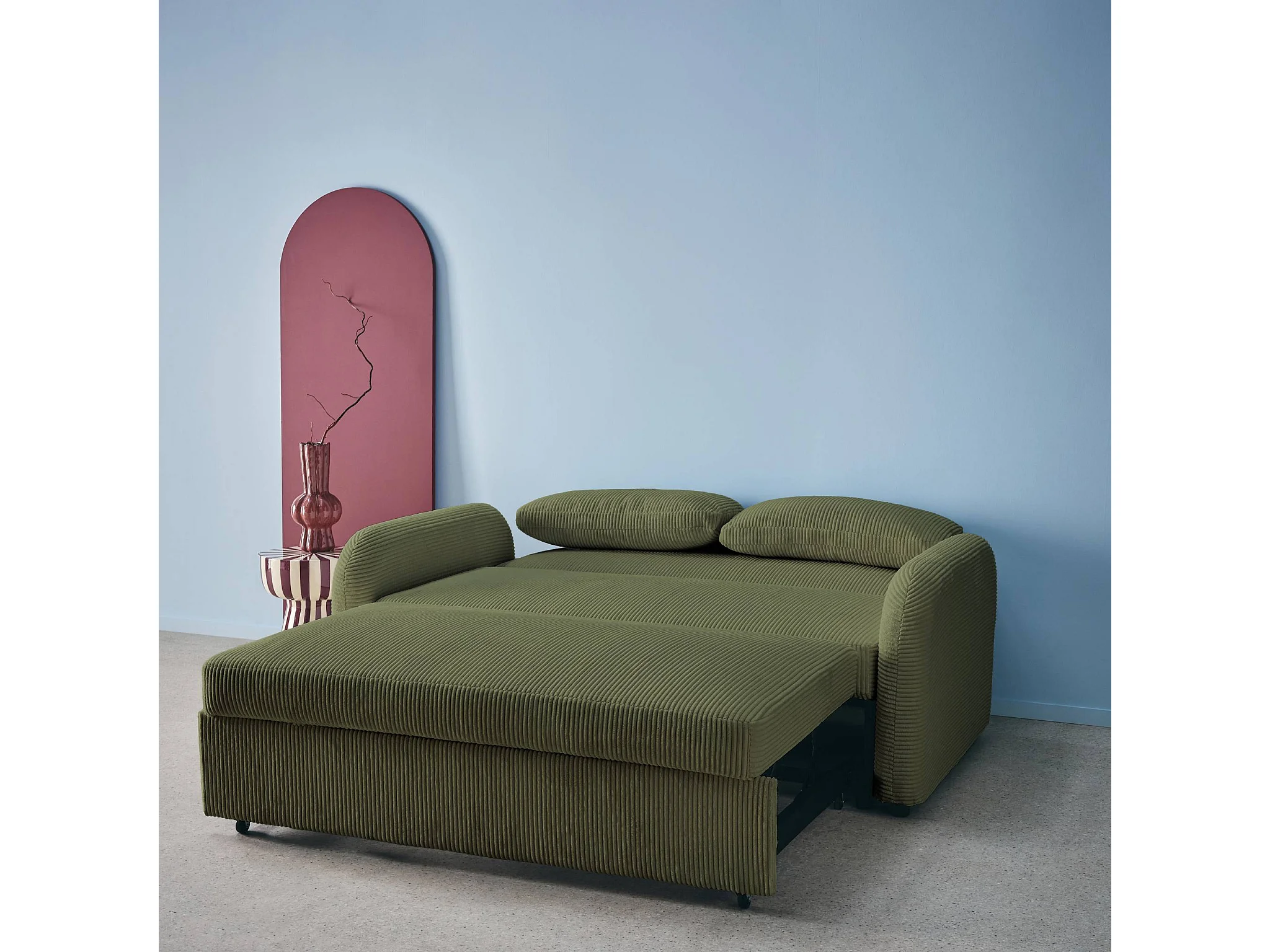 Sofá cama redondeado de pana fina, 2 plazas verde kaki