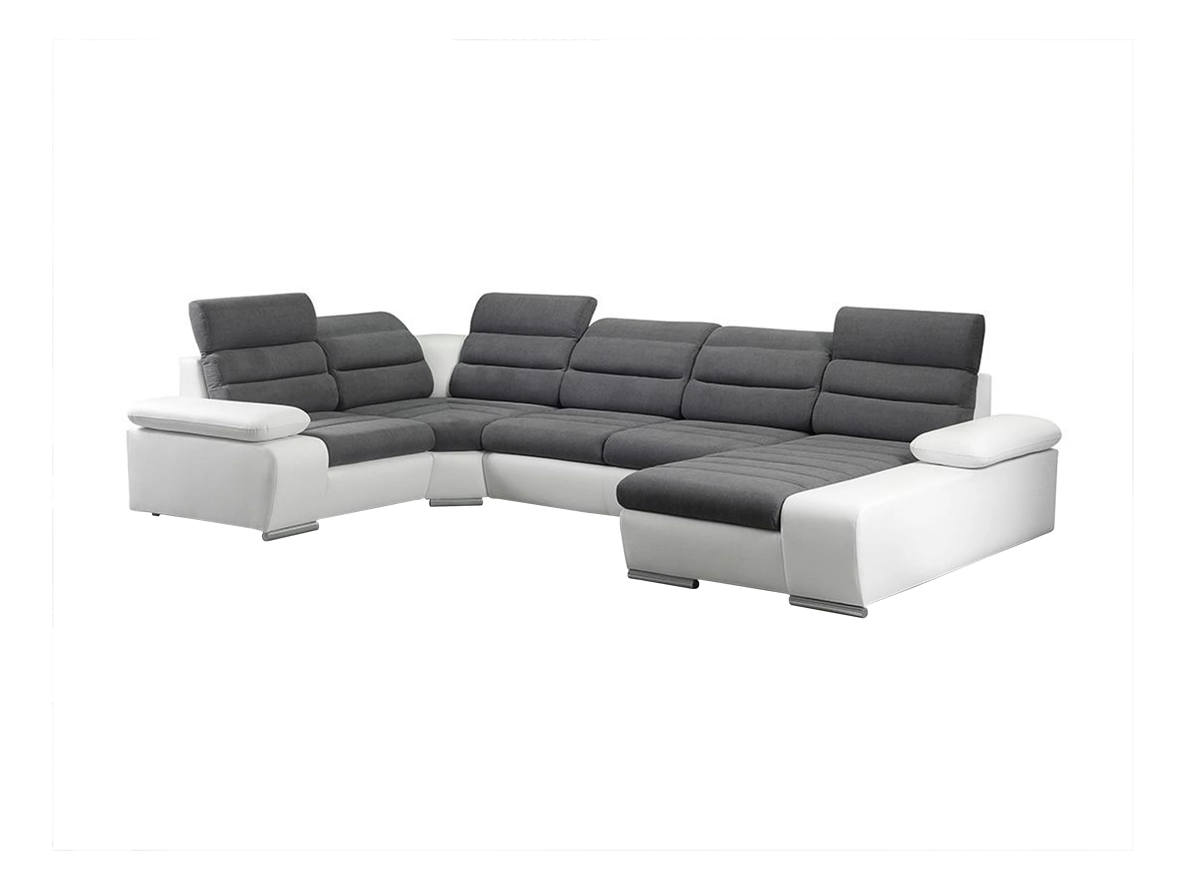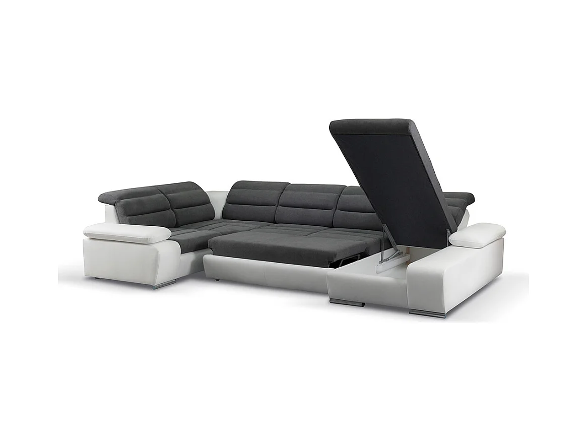 Sofá cama rinconera XXL de tela y piel sintética BOILEAU - Bicolor Gris/Blanco - Ángulo derecho