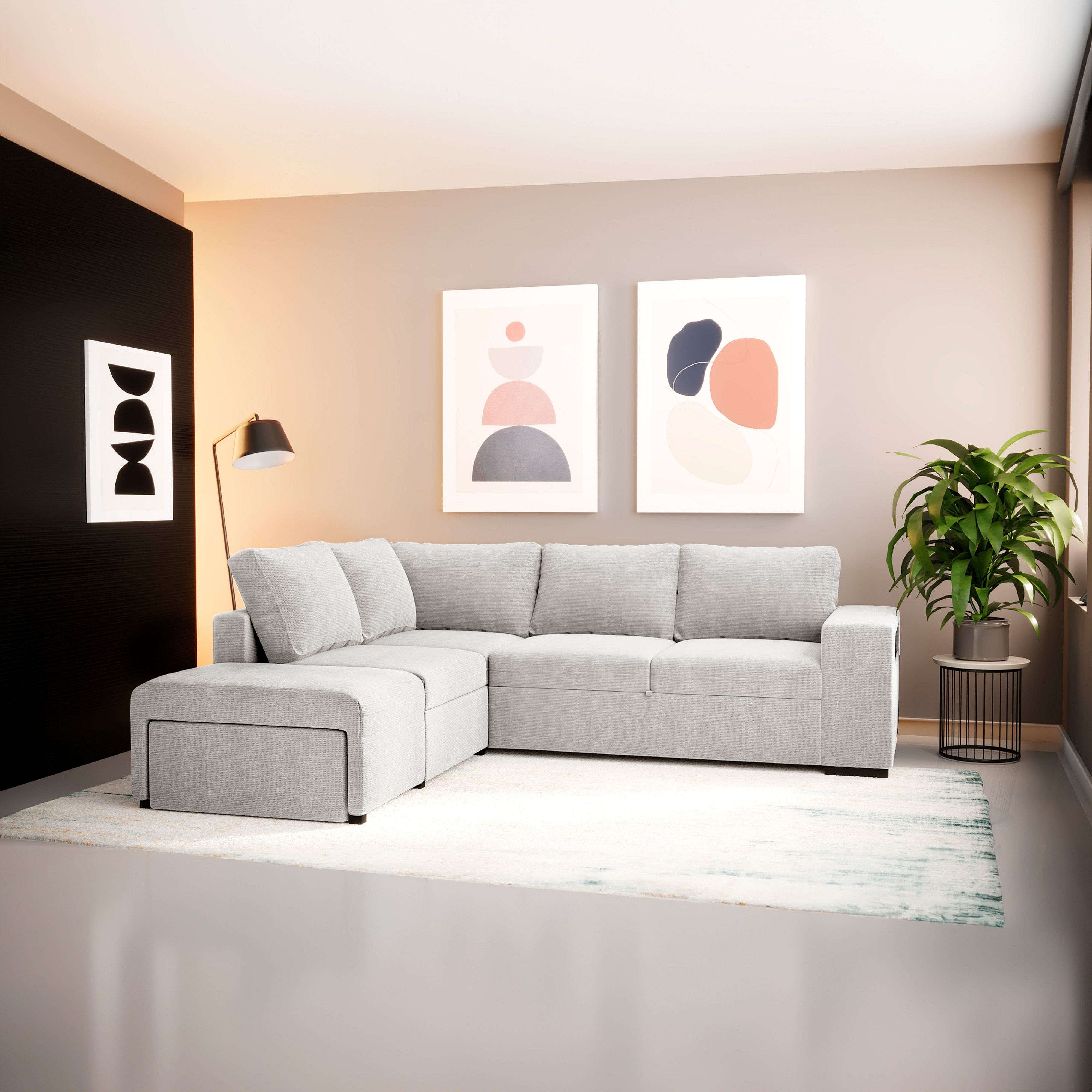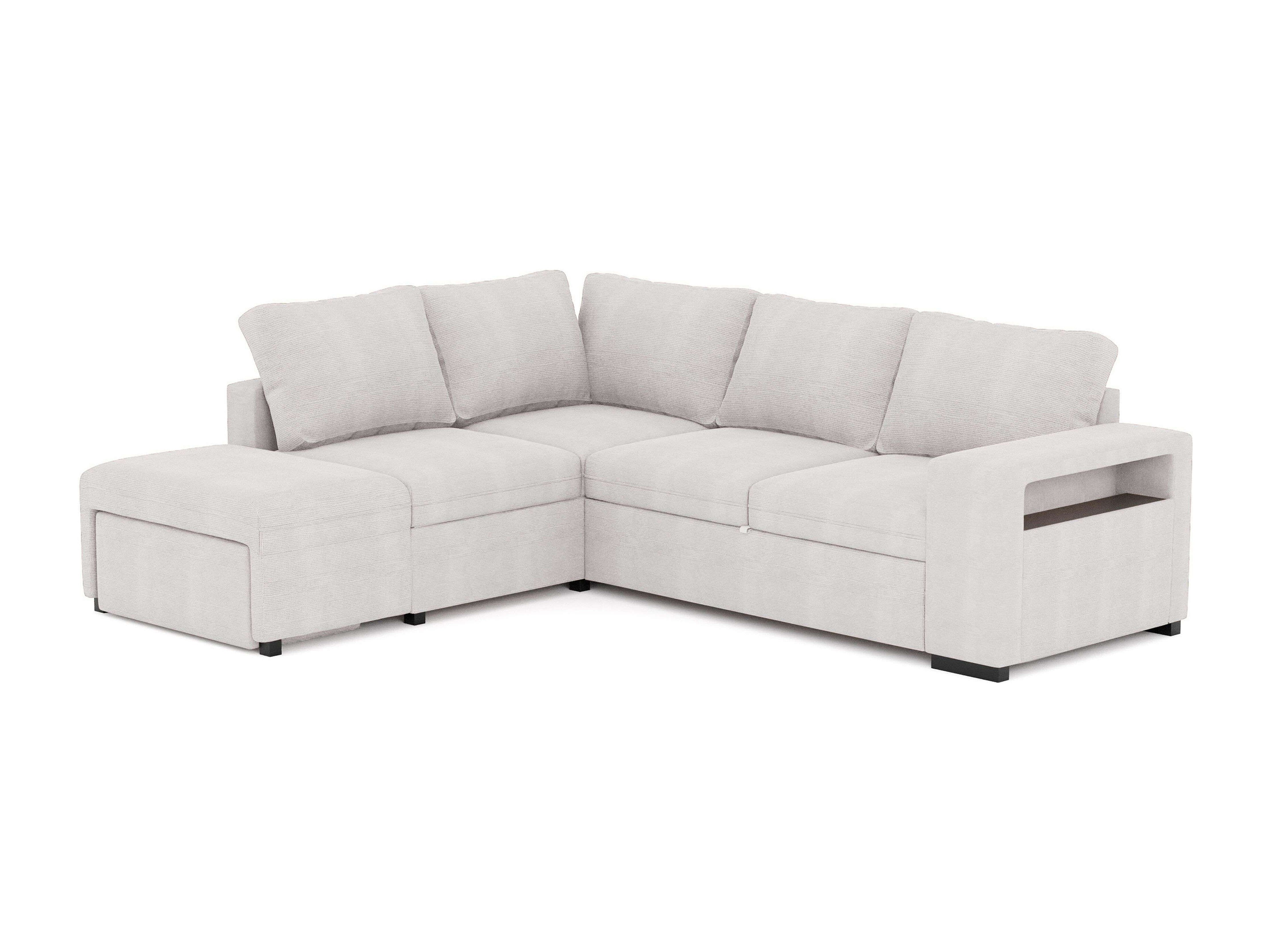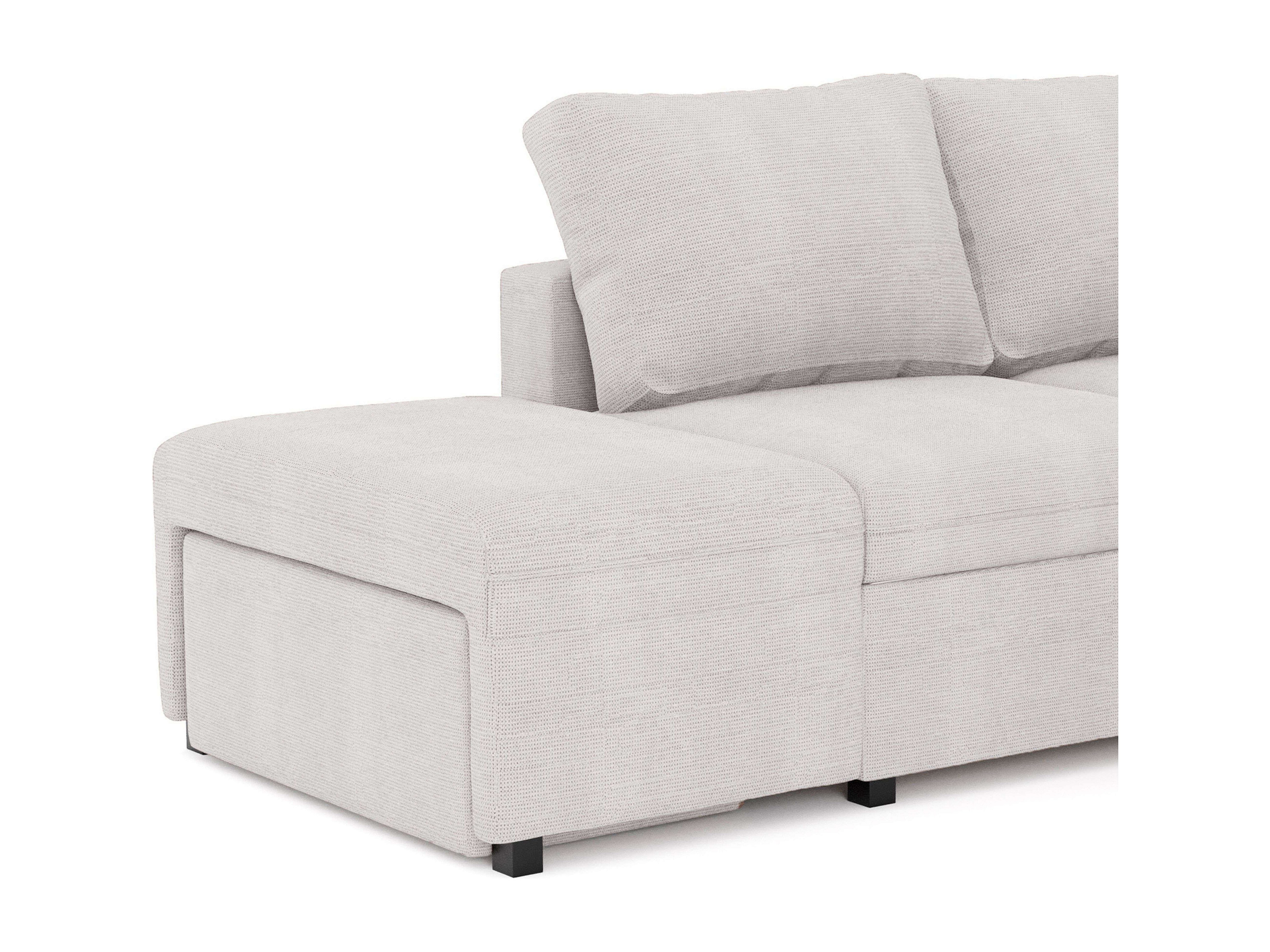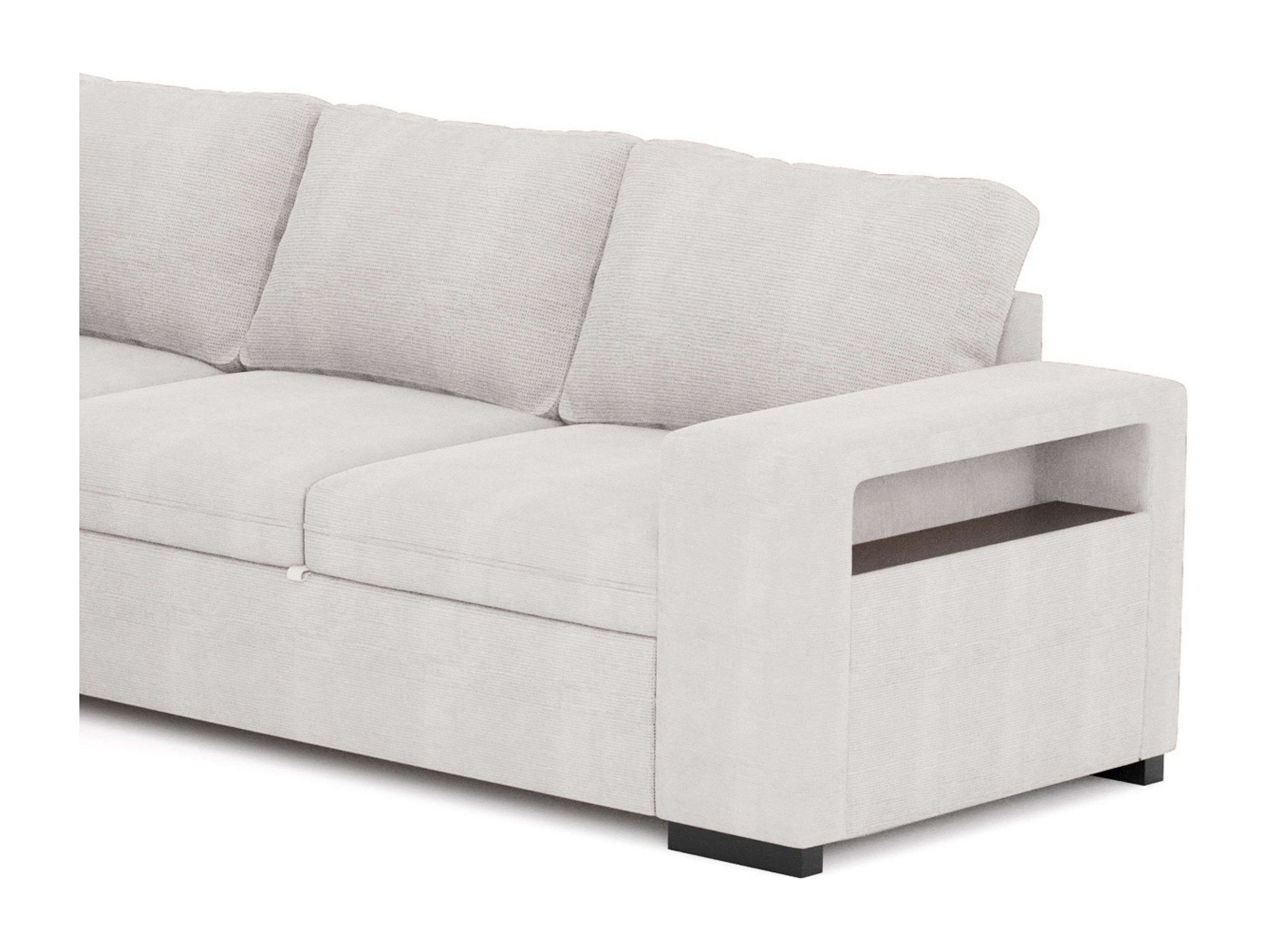 Sofá Cama Romeo Chaiselongue con Arcón, Puf y Estante Beige 249 cm