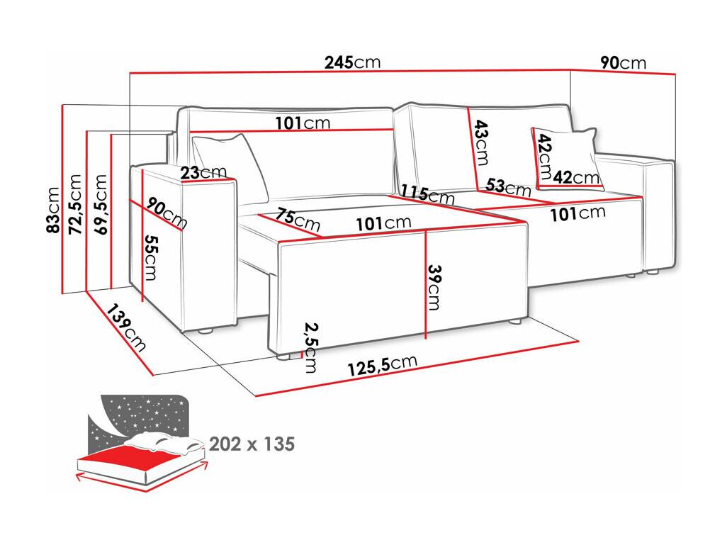 Sofá-cama Shelton 106, Almacenaje, 82x245x90cm