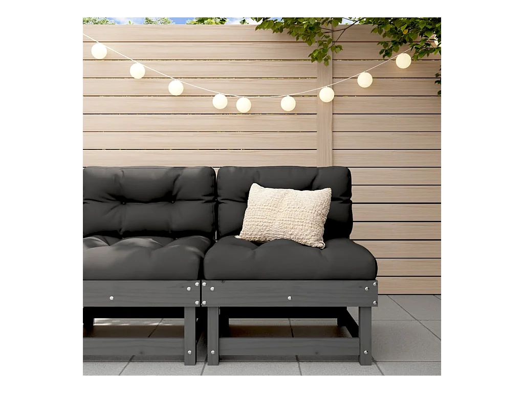 2 uds Sofás centrales con cojines madera maciza de pino gris KOW94131