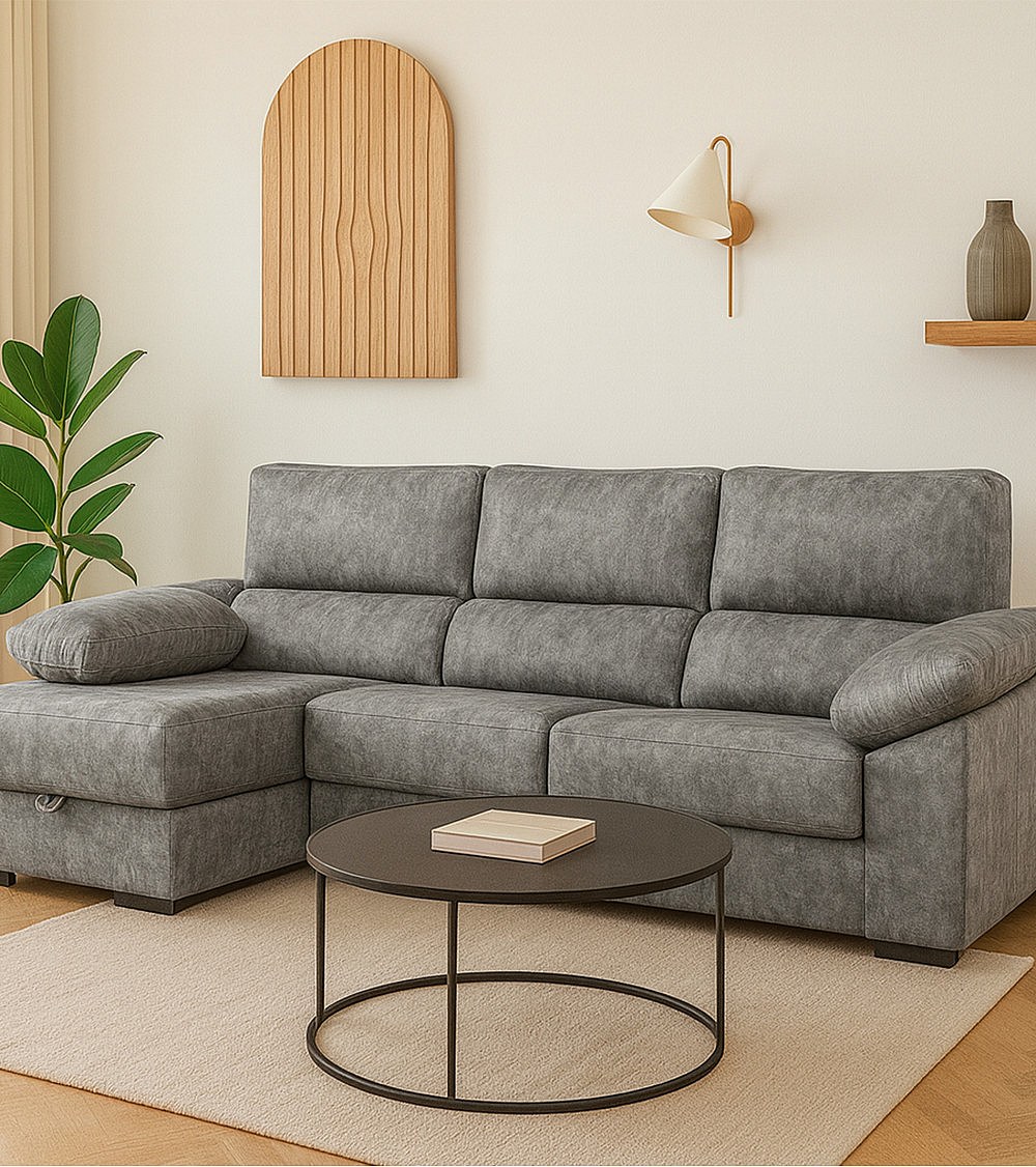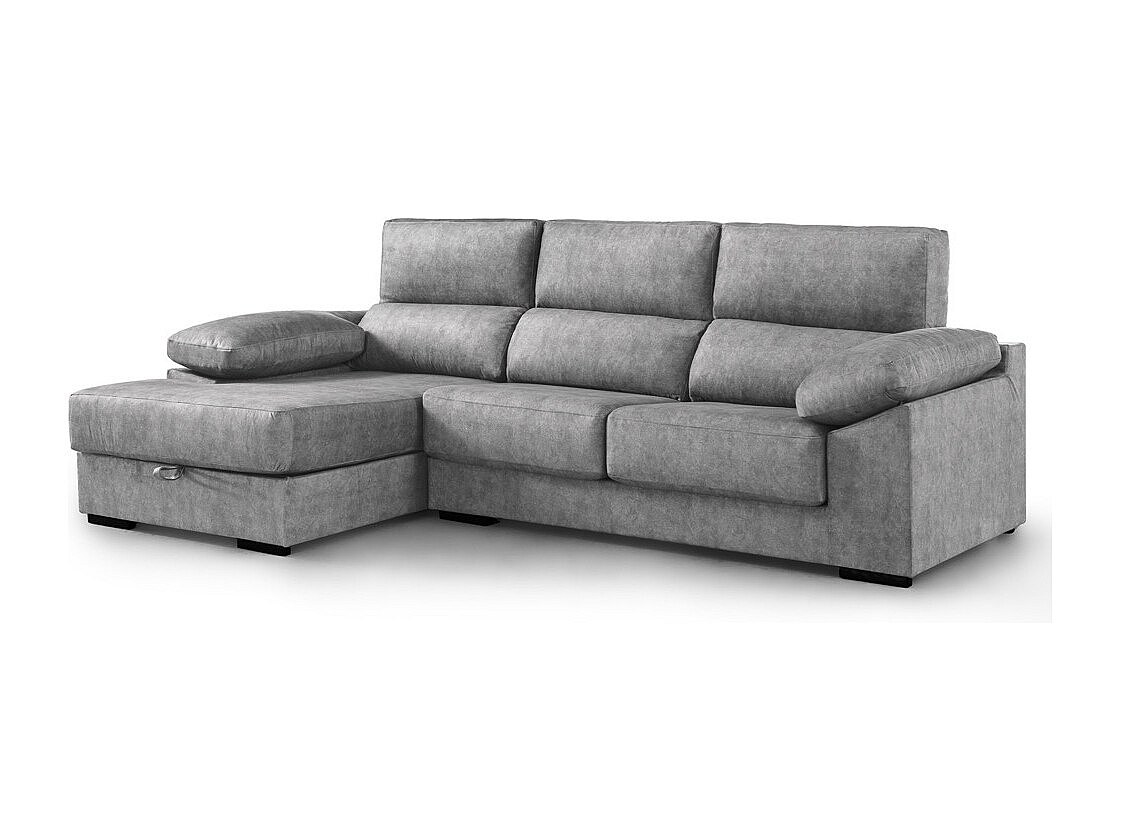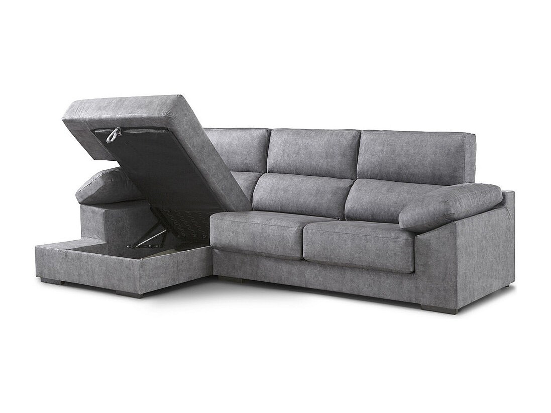 Sofá Chaise Longue derecho de 100x283x167 con arcón y patas metálicas gris oscuro Monti