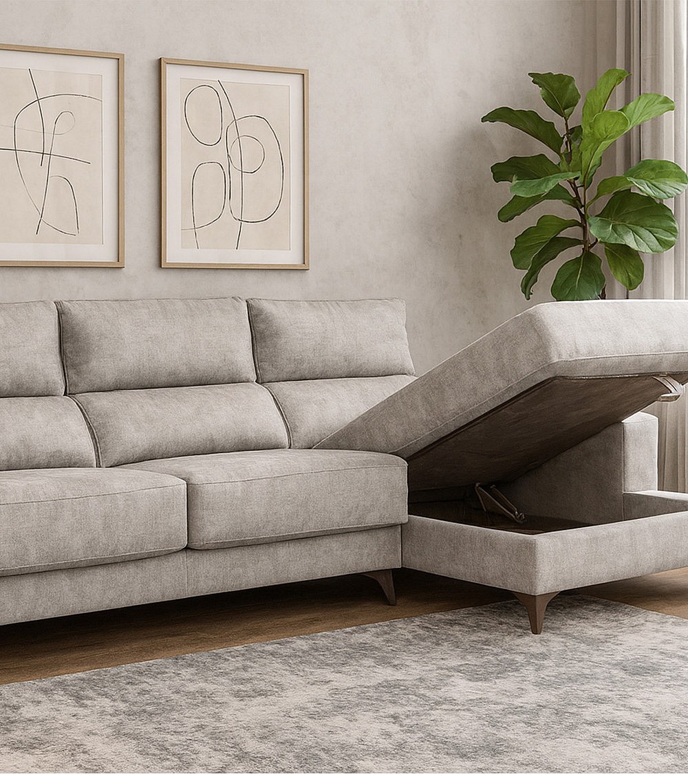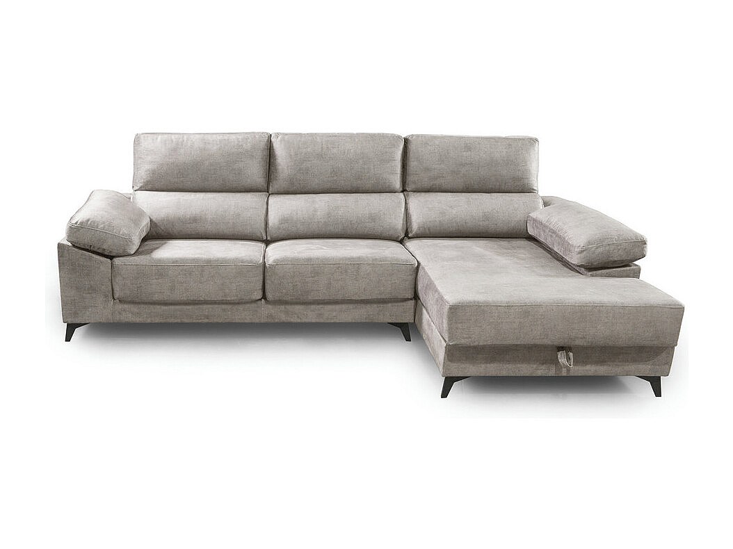Sofá Chaise Longue izquierdo de 101x293x167 cm con arcón integrado color gris claro Vis