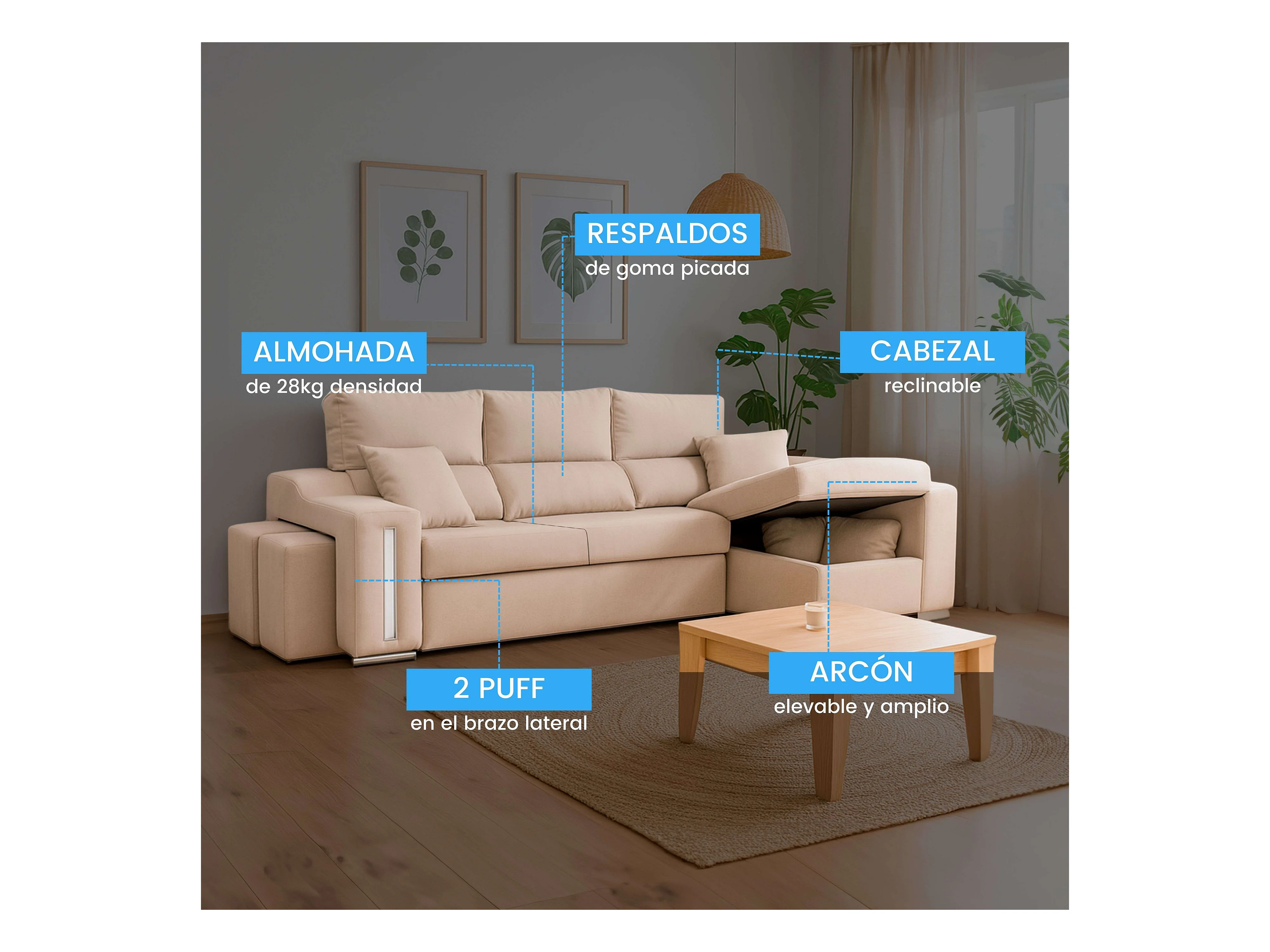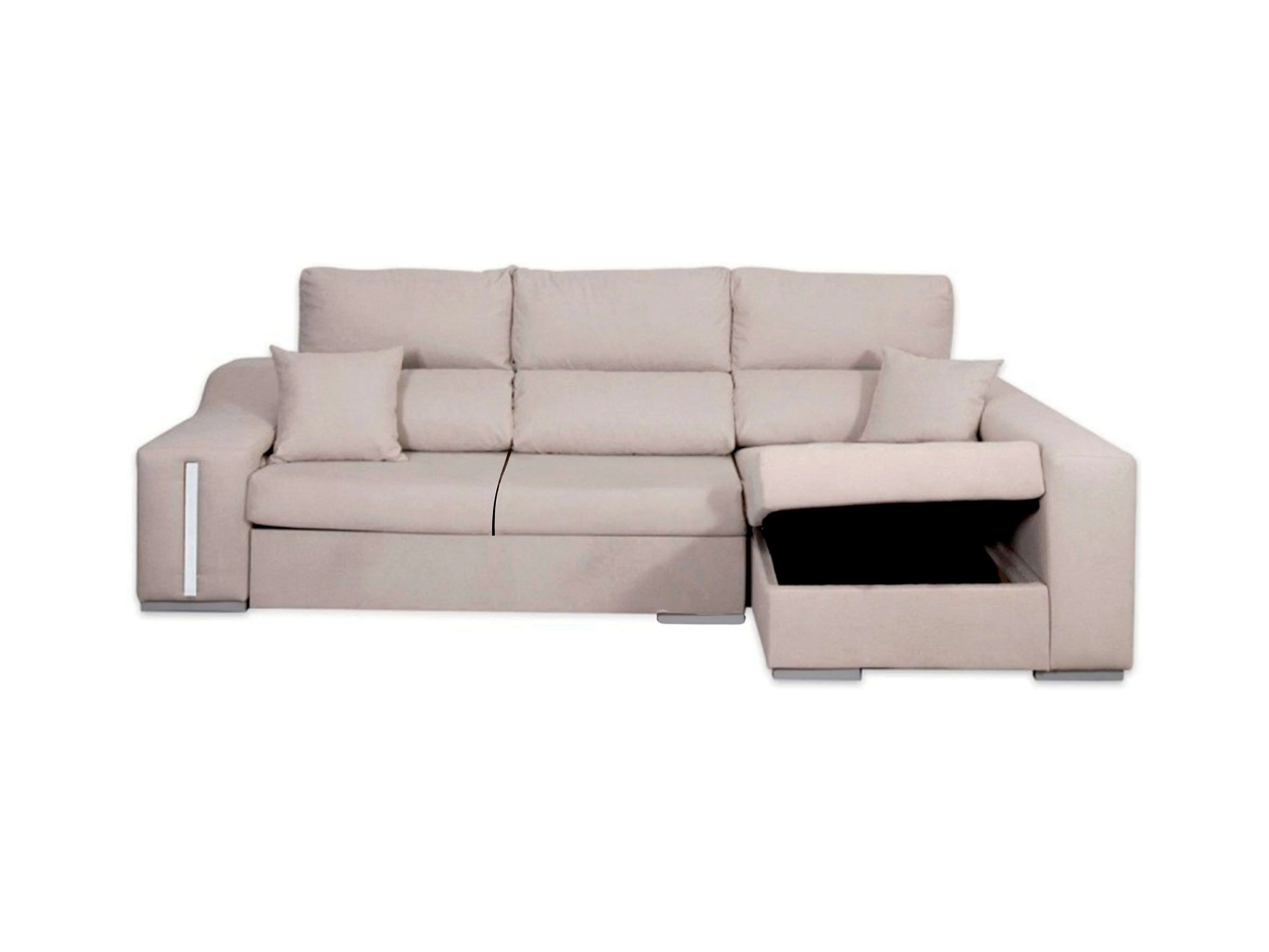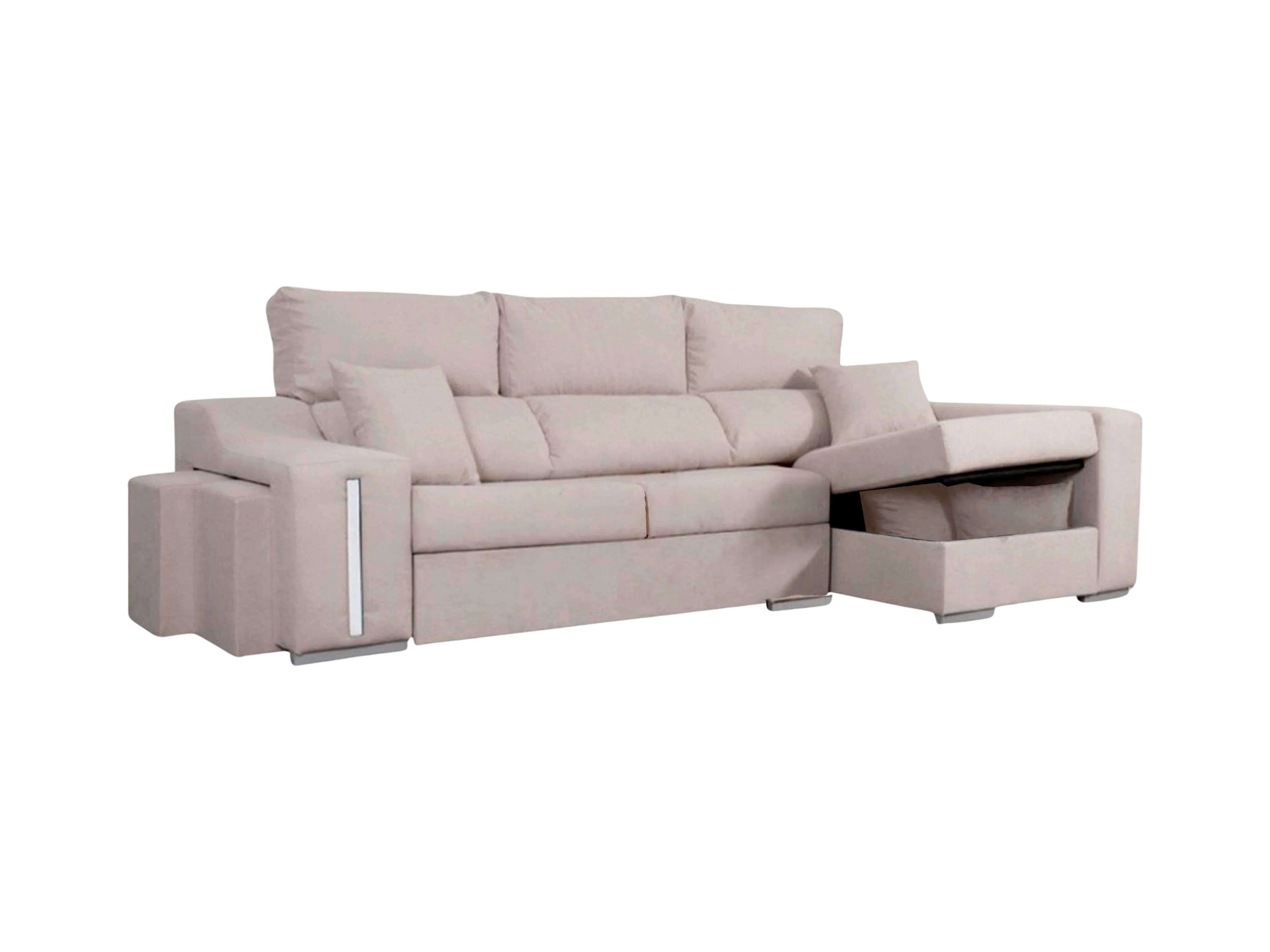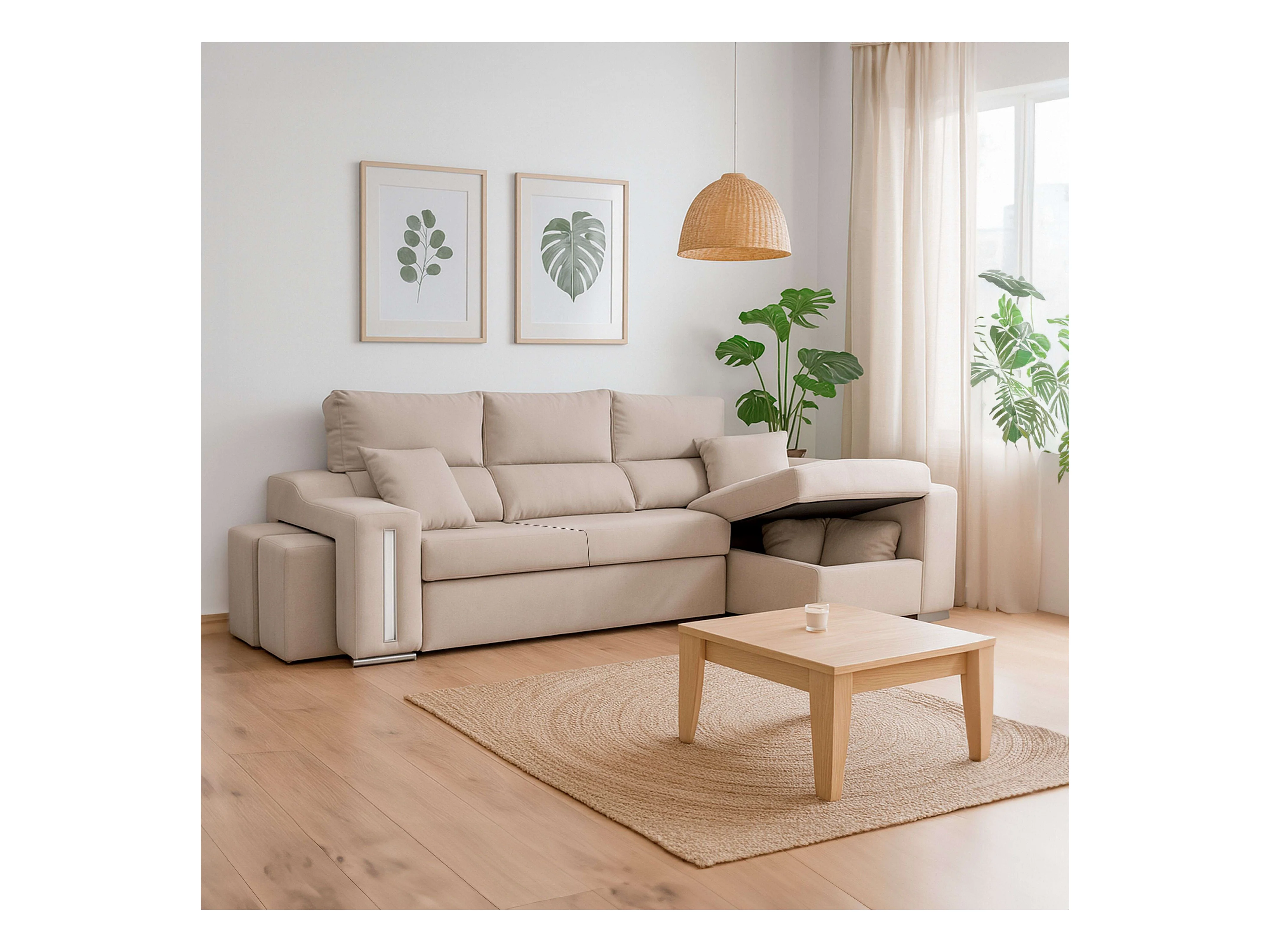 Sofá chaise longue Oscar dcha beige con 2 puffs y arcón 263x100x85 cm