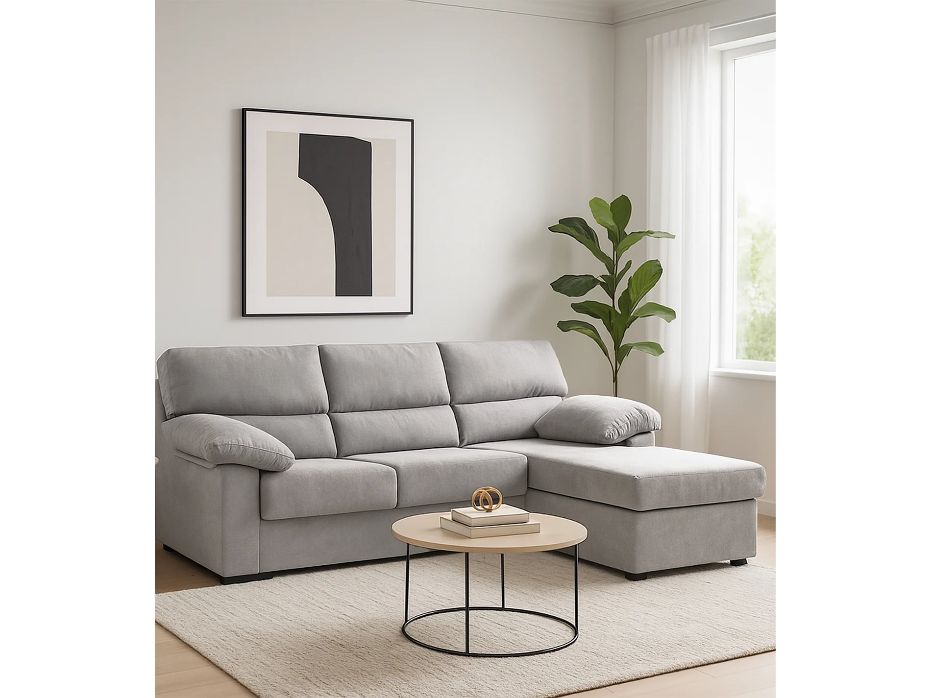 Sofá Chaise Longue reversible de 100x196x156 cm de tela antimanchas en gris claro Denver