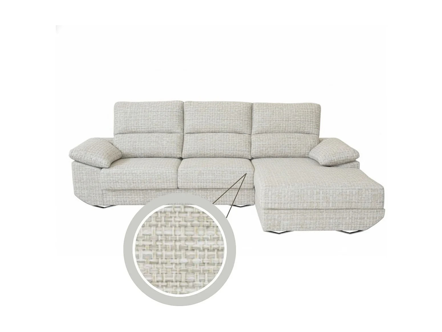 Sofá chaiselongue izquierda Danielle 3 plazas tela opera crudo