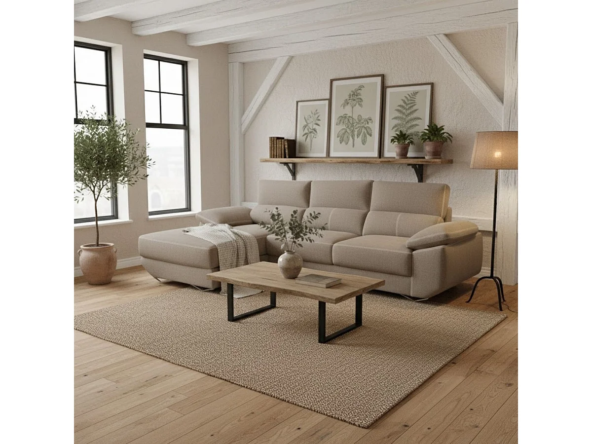 Sofá chaiselongue izquierda Danielle 3 plazas tela bronx piedra