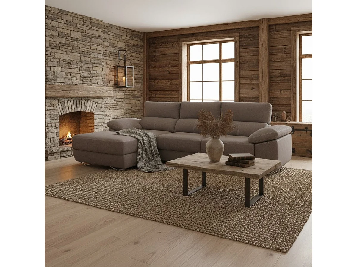 Sofá chaiselongue izquierda Danielle 3 plazas tela bronx smoke