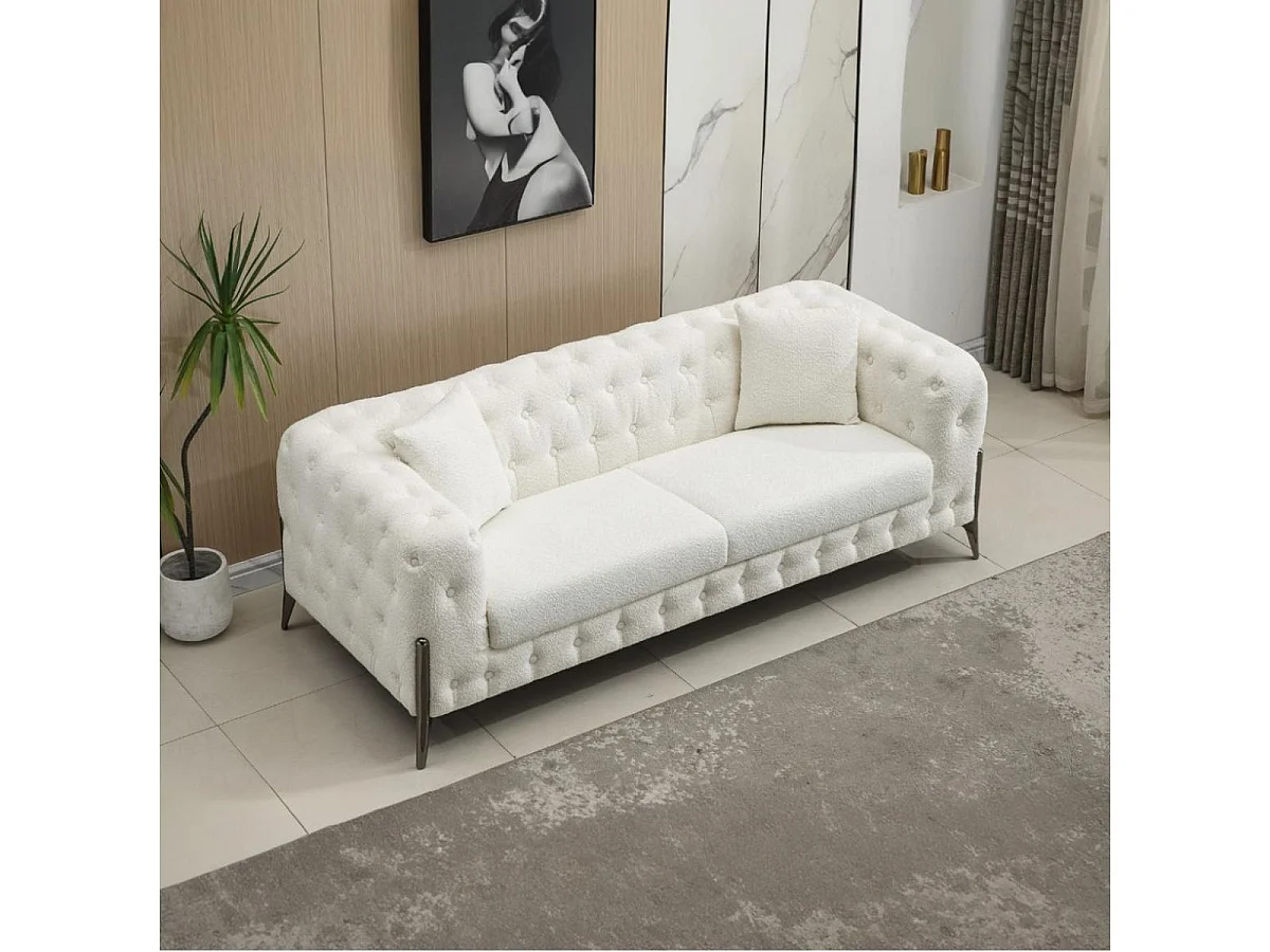 Sofá chester Cindy 3 plazas + 2 cojines blanco 72x202x85 cm Adec