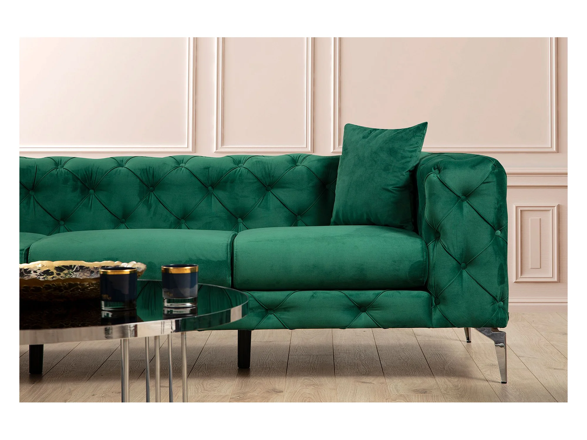 Sofá chesterfield Altadena 356, Verde, 237x90x73cm, Tapiz, Patas: Metal