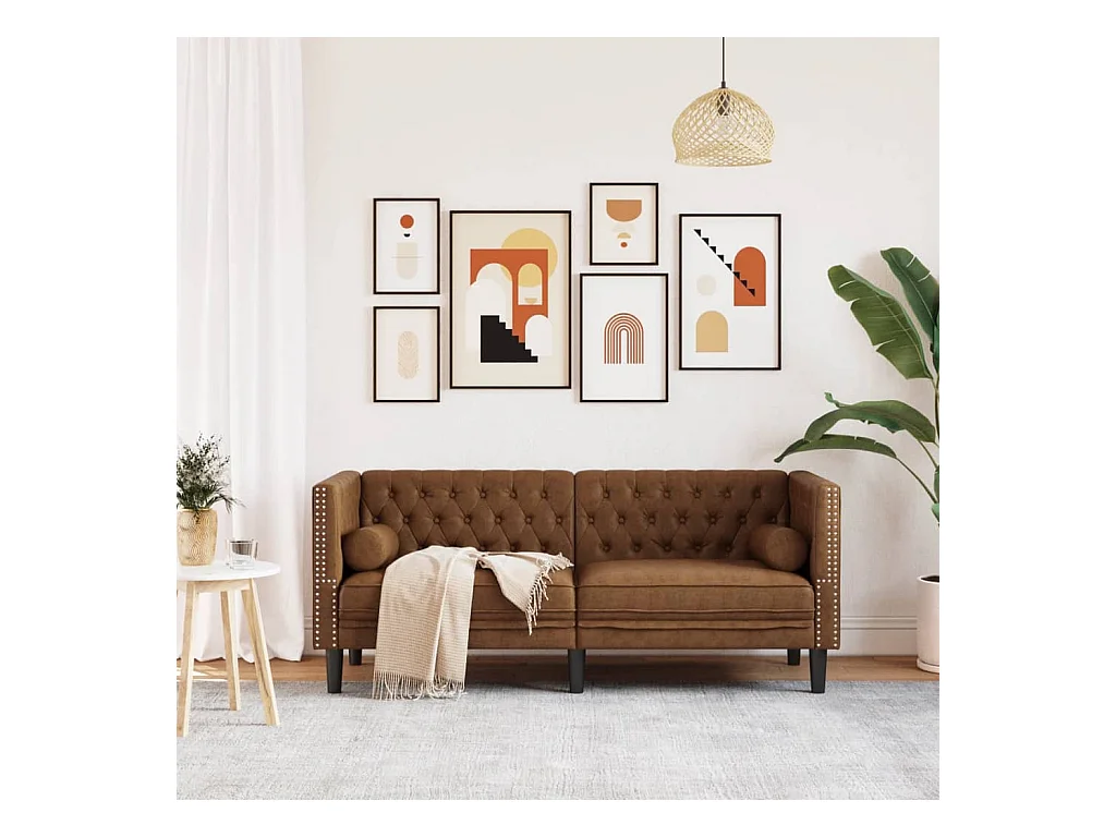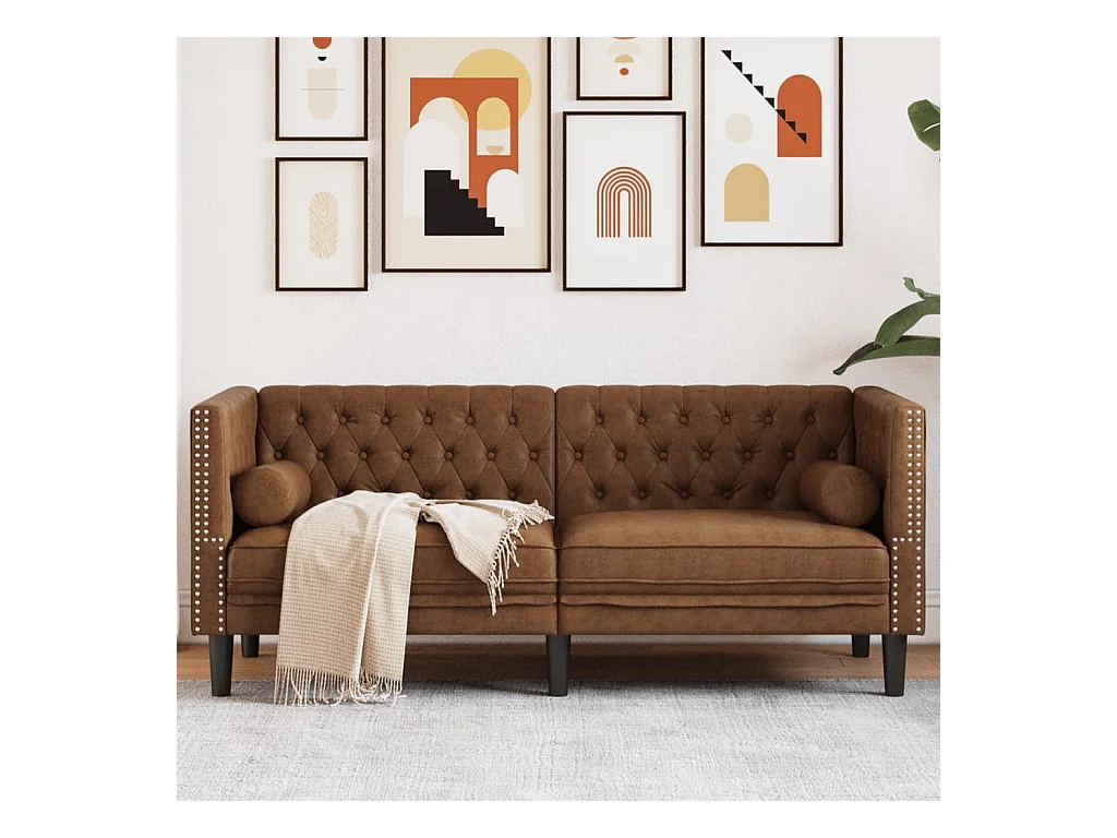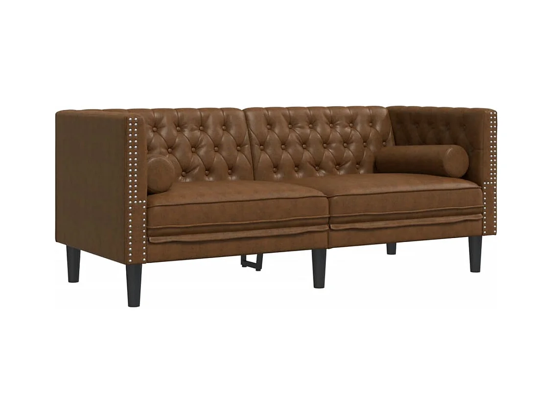 Conjunto de sofá Chesterfield de 2 piezas y cojín en marrón