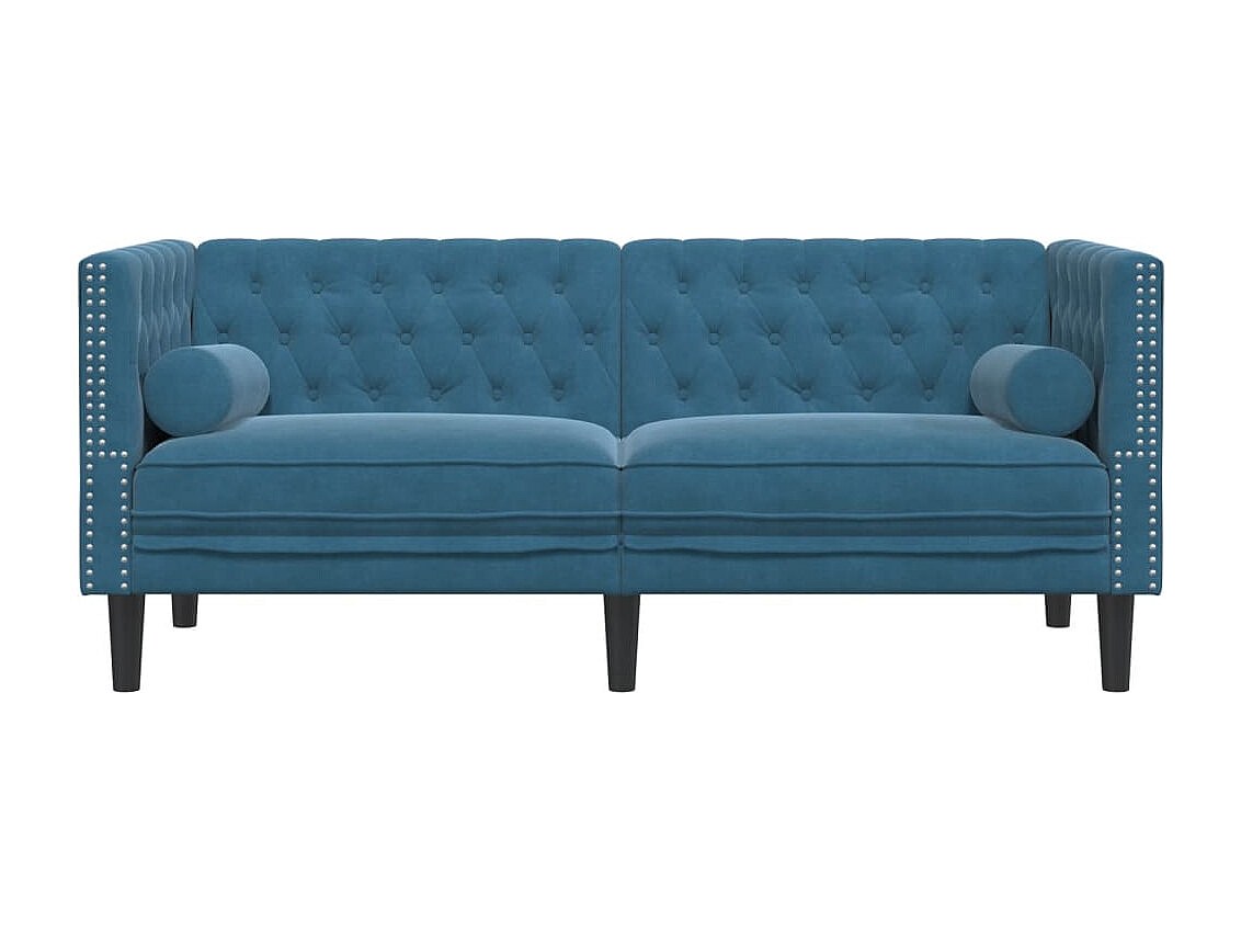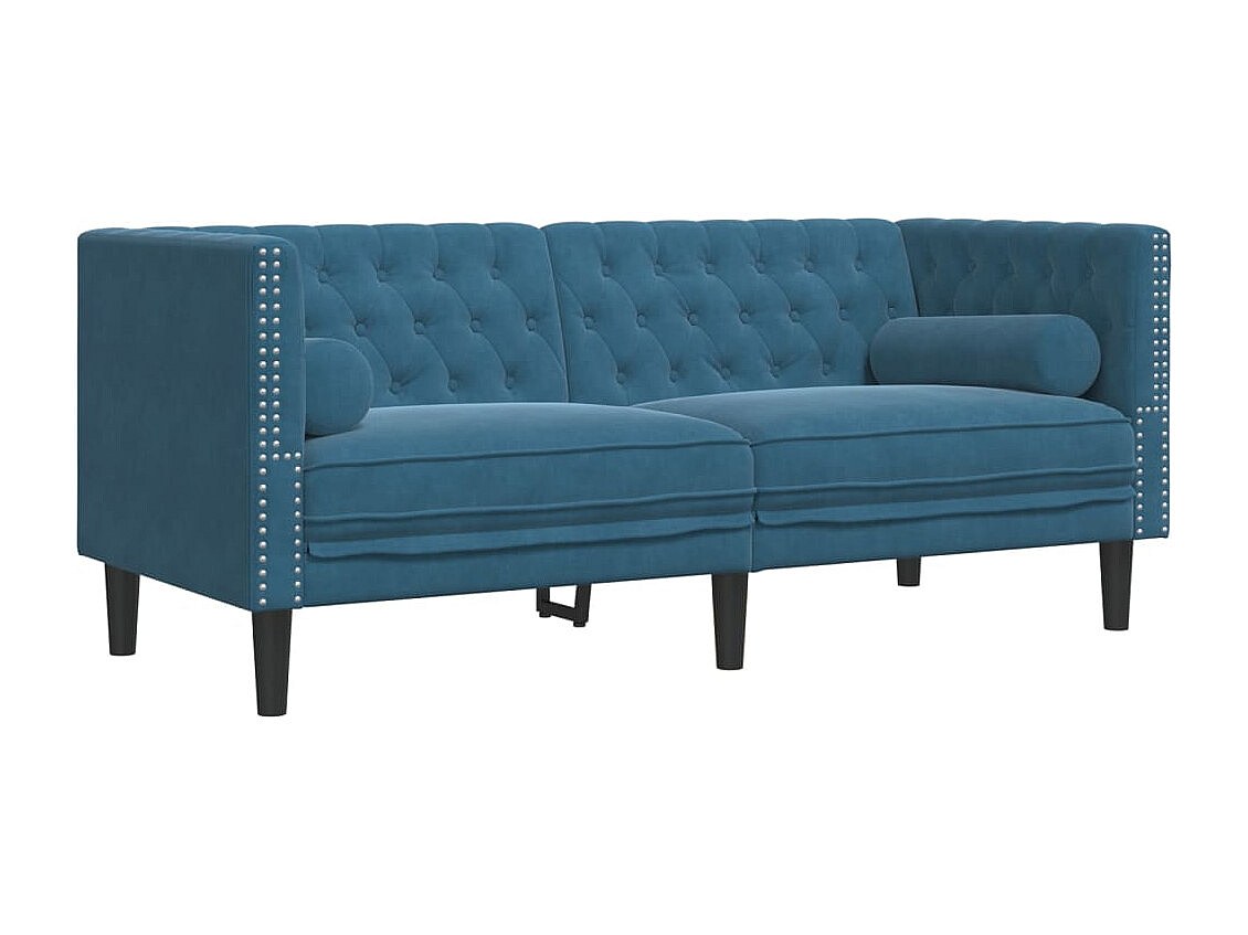Sofá Chesterfield de 2 plazas con cojines en terciopelo azul