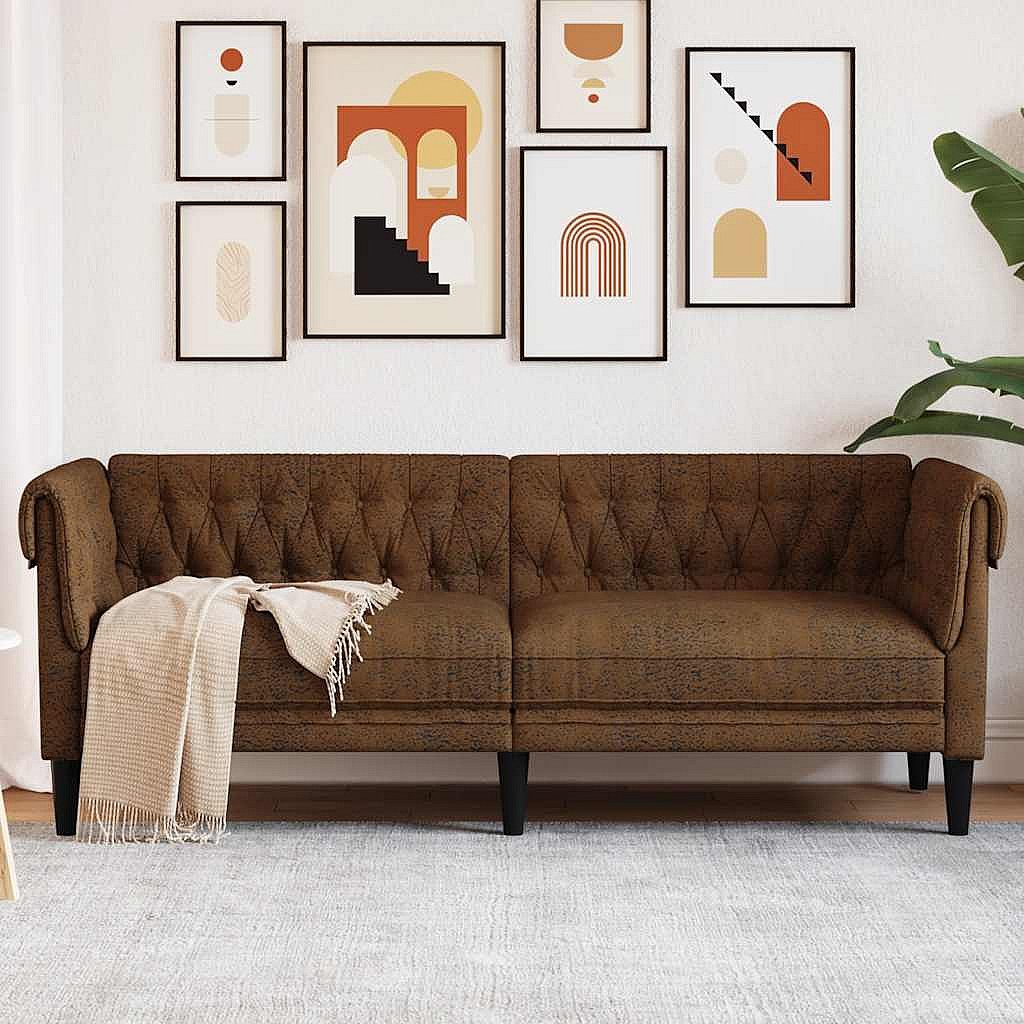 Sofá Chesterfield de 3 plazas en piel sintética marrón