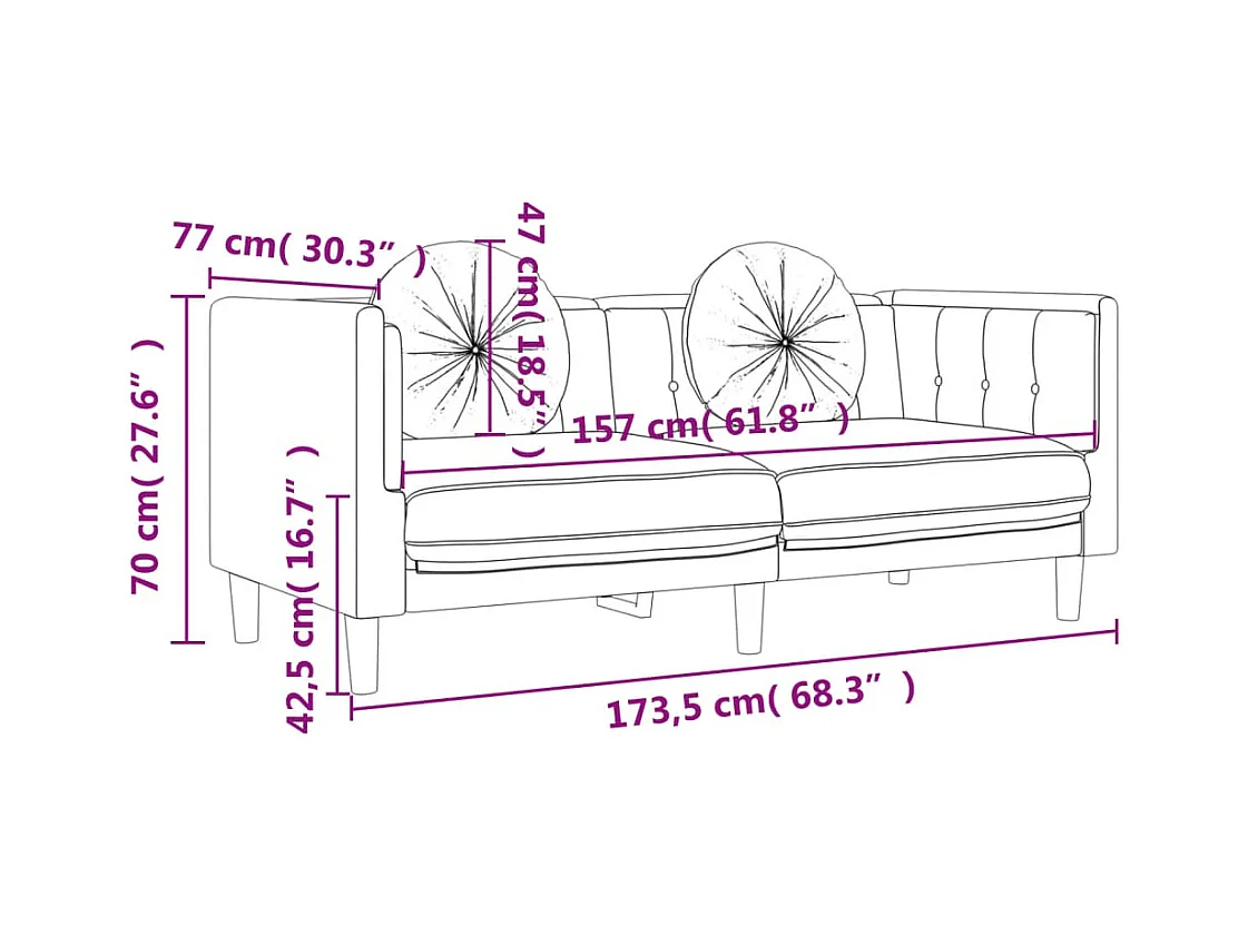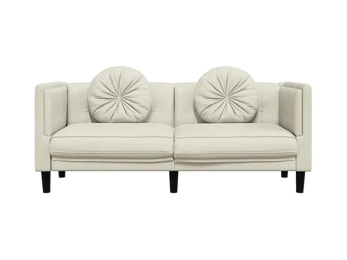 Sofá de 2 plazas con cojines terciopelo color crema 120 cm