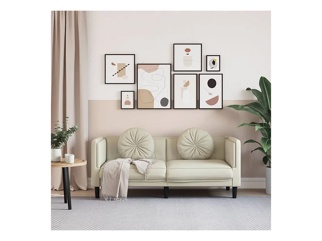 Sofá de 2 plazas con cojines cuero sintético color crema 120 cm