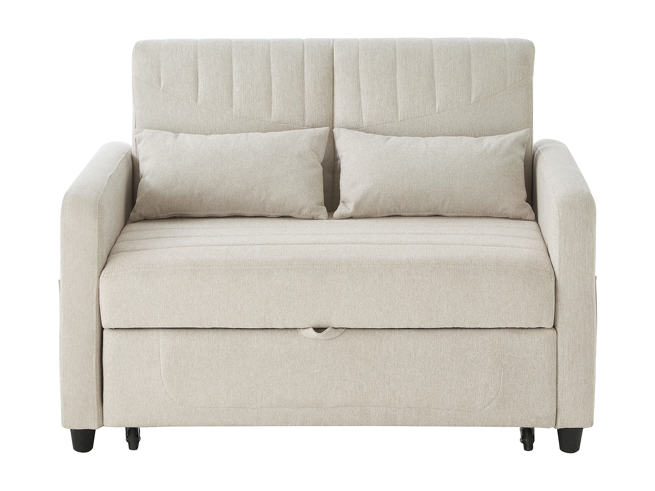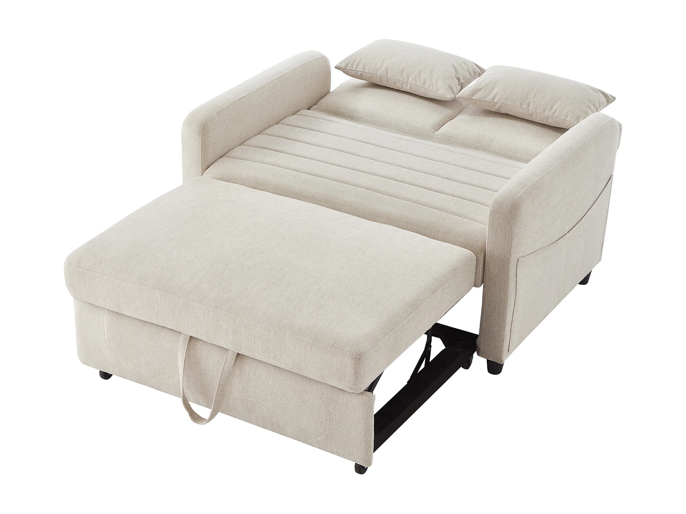 Sofá convertible con reposabrazos, respaldo ajustable y bolsillos laterales - Lino Beige