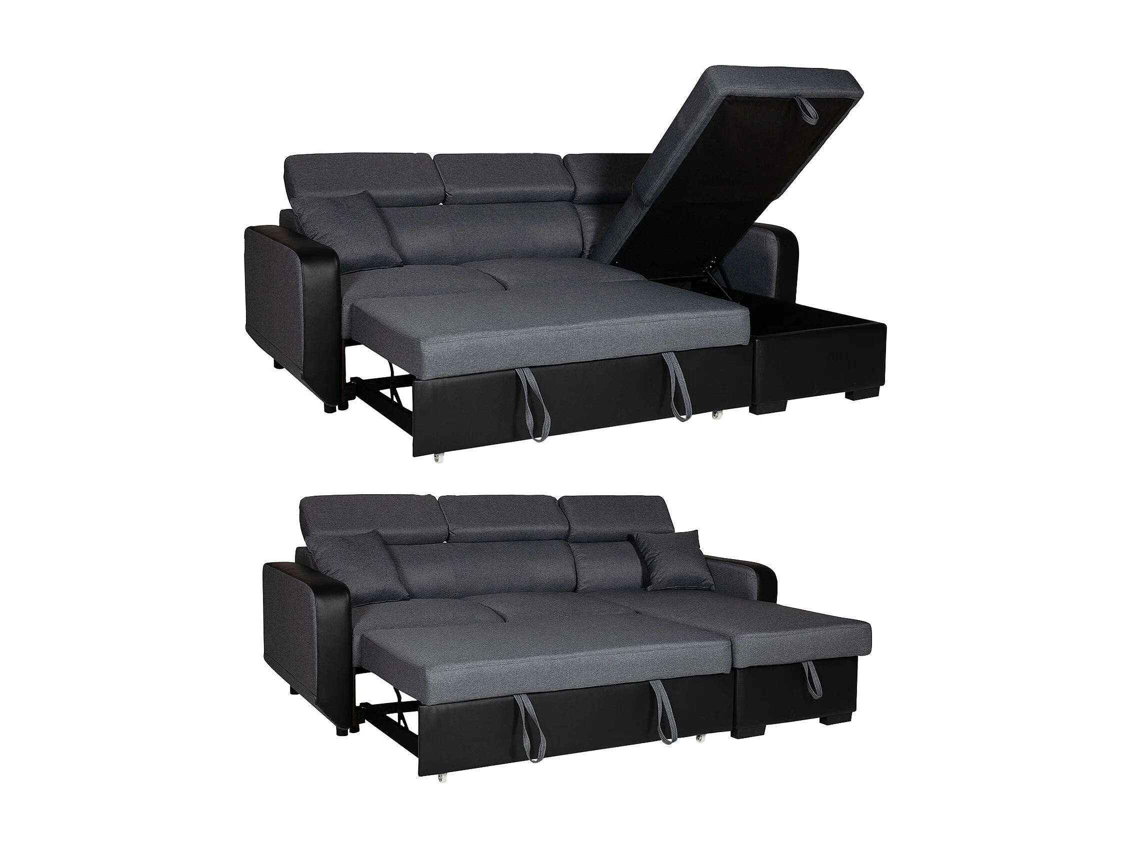 Sofá convertible de 3 plazas WARREN gris y negro