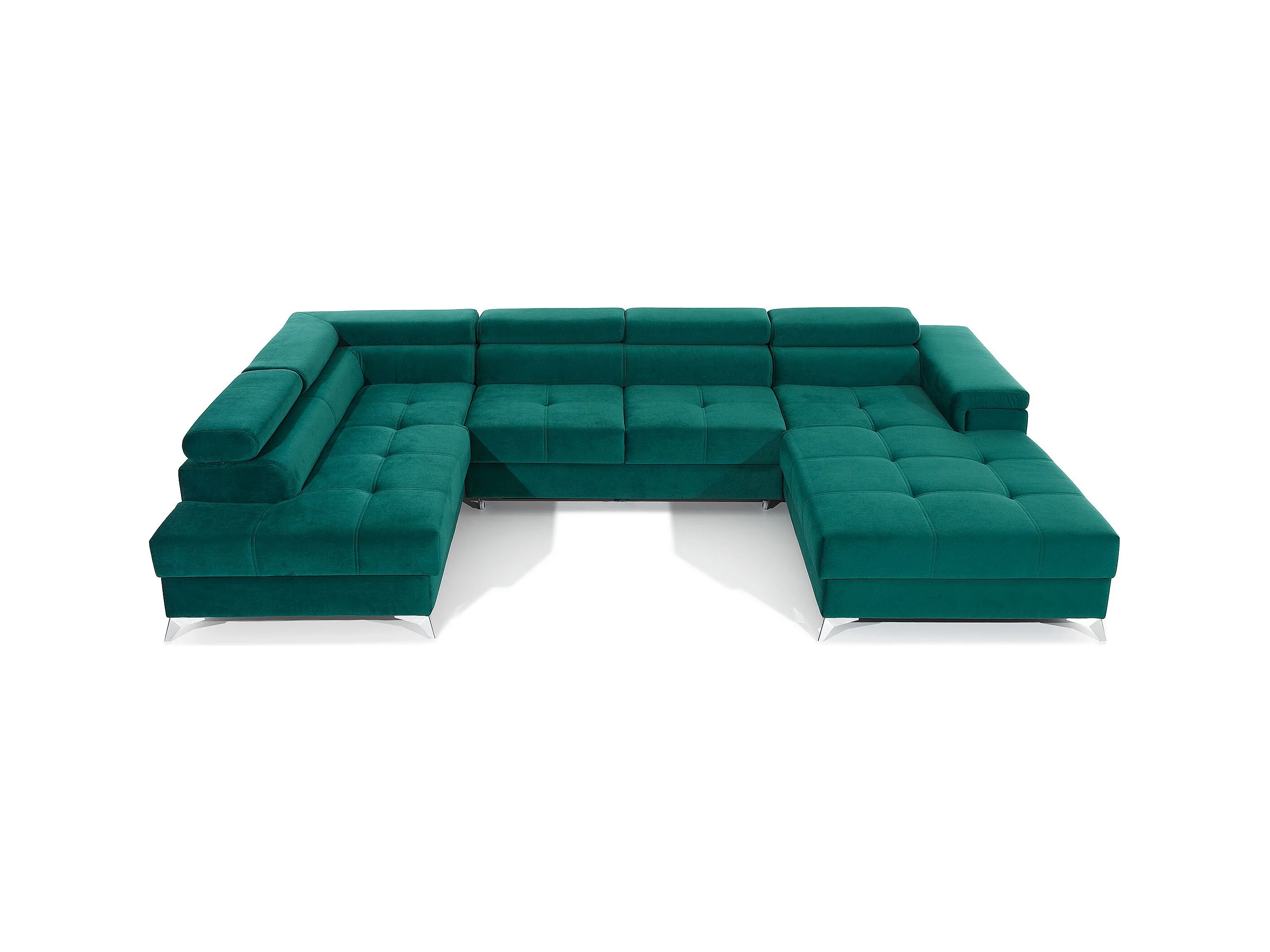 Sofá convertible panorámico de terciopelo KUTTY - Almacenamiento y reposacabezas ajustables-Gris claro-Caja Lado izquierdo