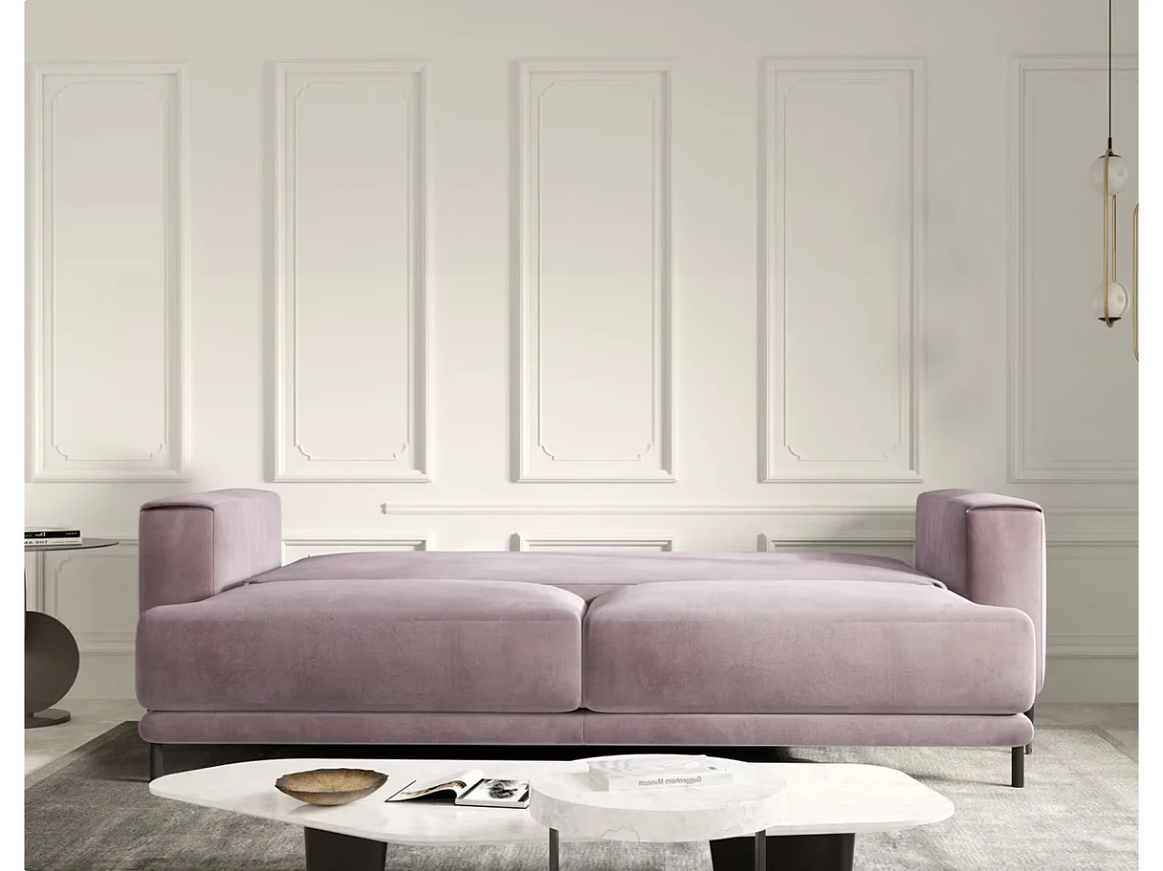 Sofá convertible recto DAVINA de terciopelo con compartimento de almacenamiento - Patas de metal negro-Color Rosa viejo
