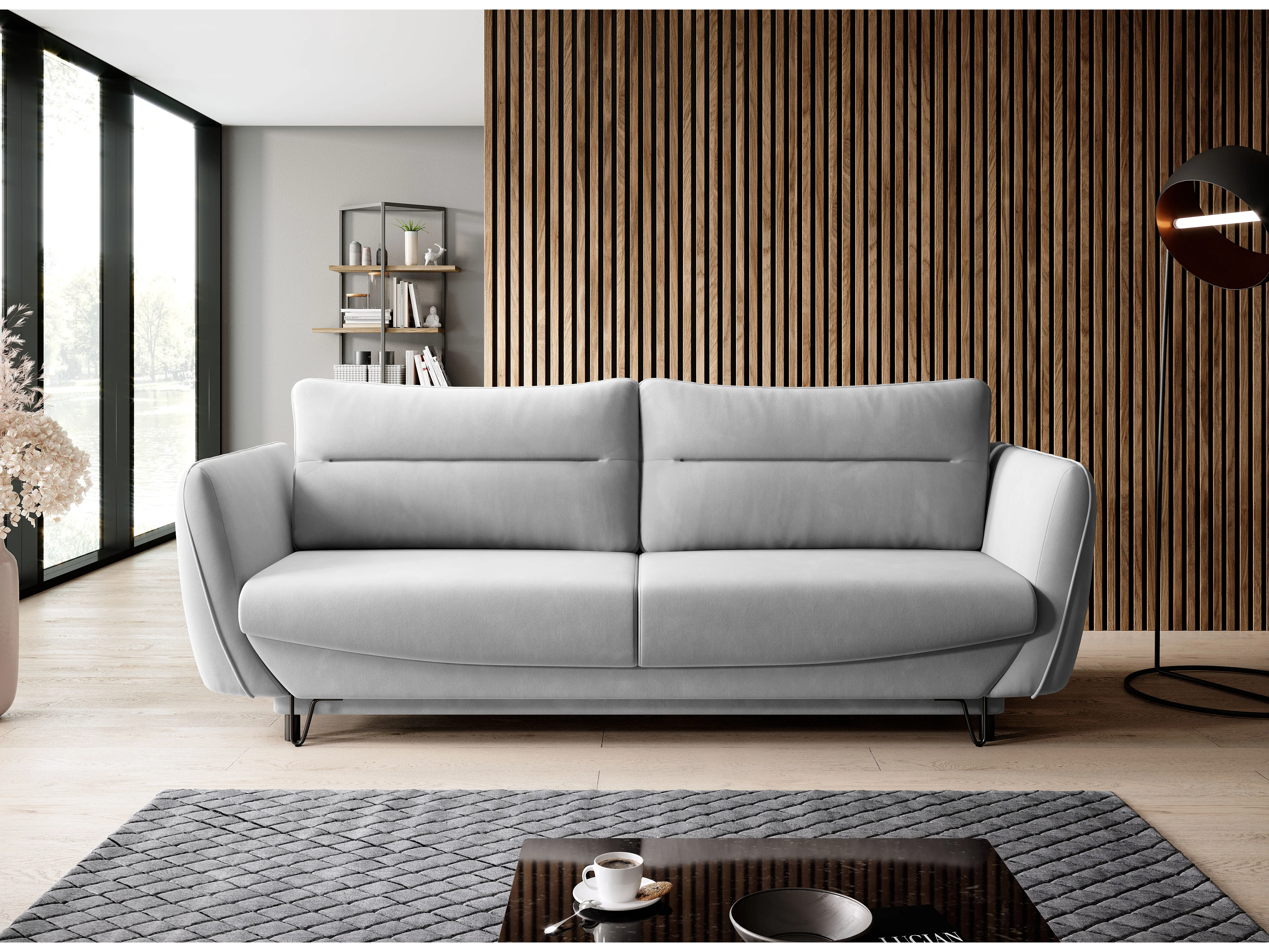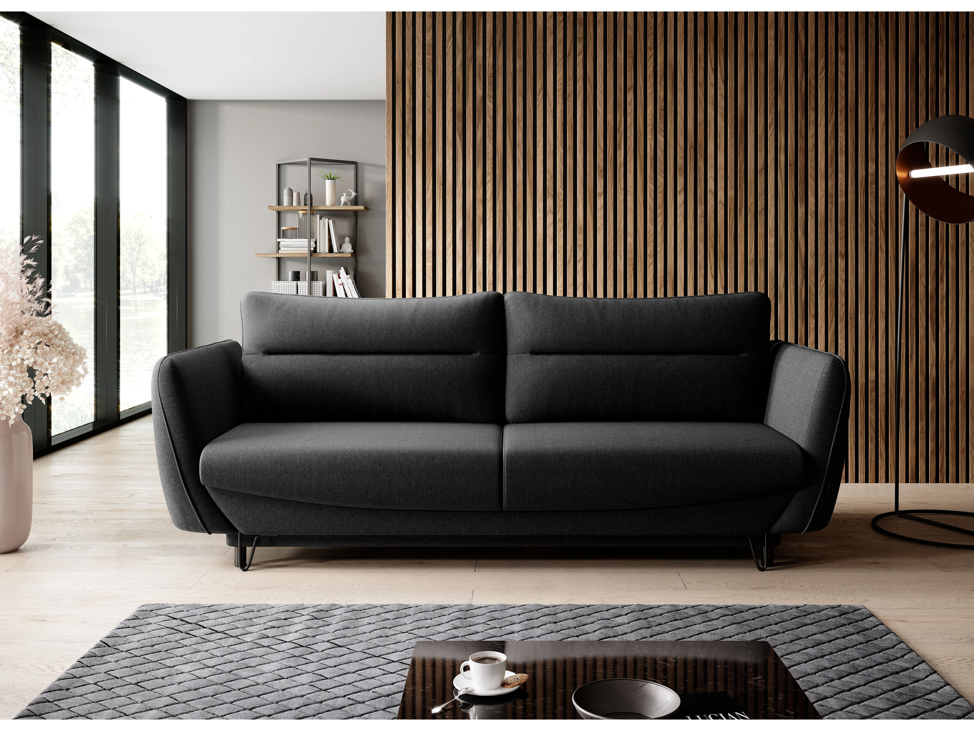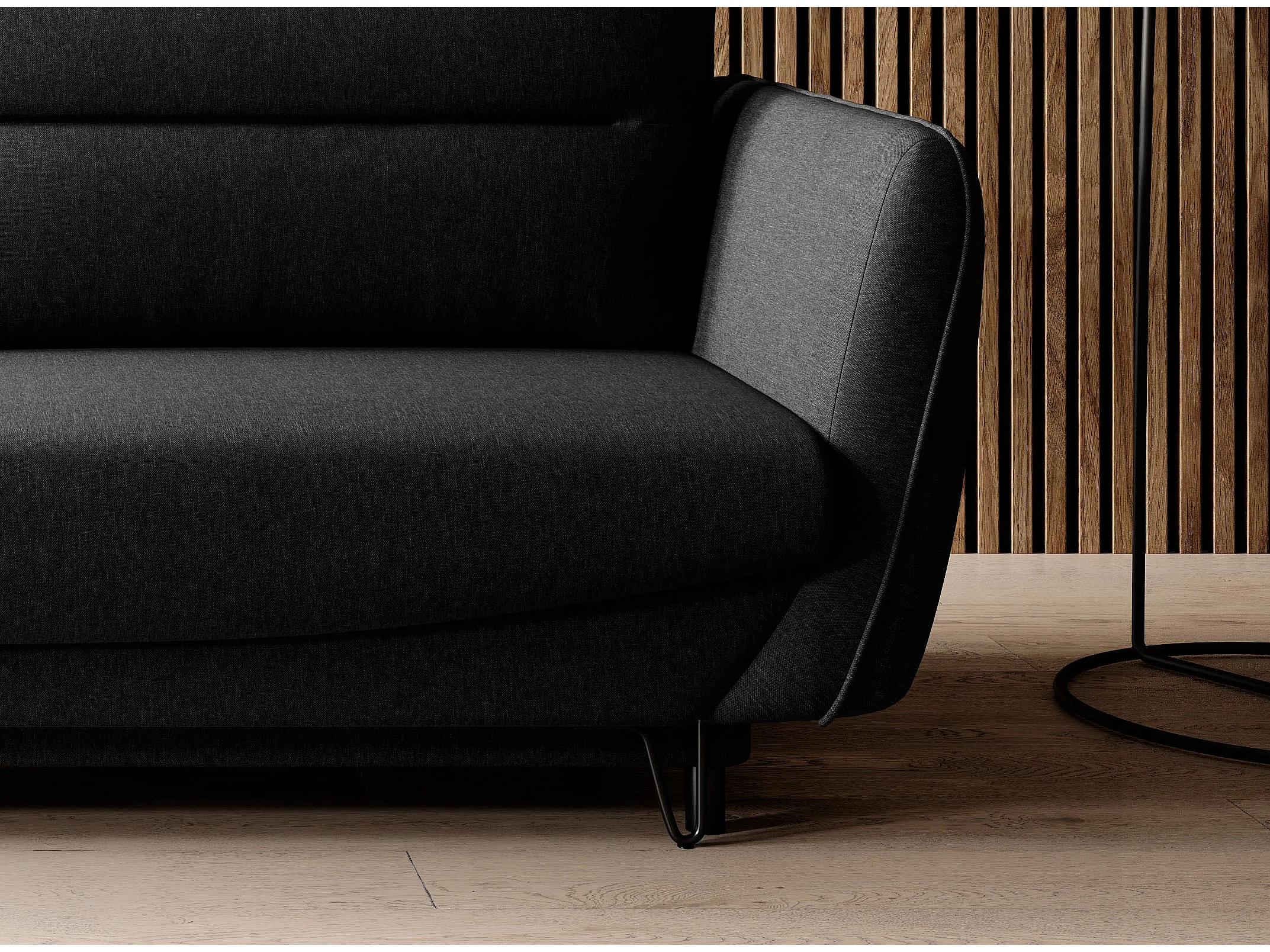 Sofá convertible recto de tela ZURIK - Caja de almacenaje y patas de metal negro-Negro