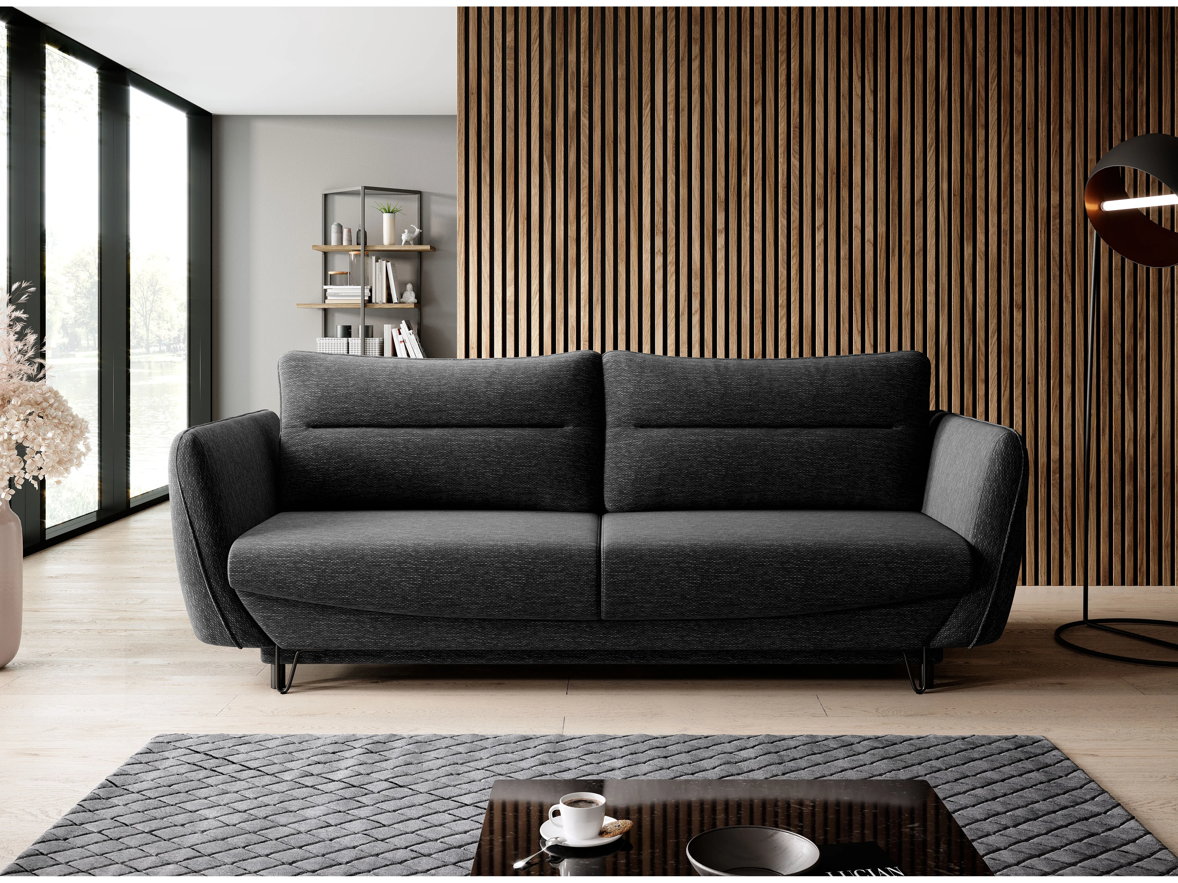 Sofá convertible recto de tela ZURIK - Caja de almacenaje y patas de metal negro-Negro moteado