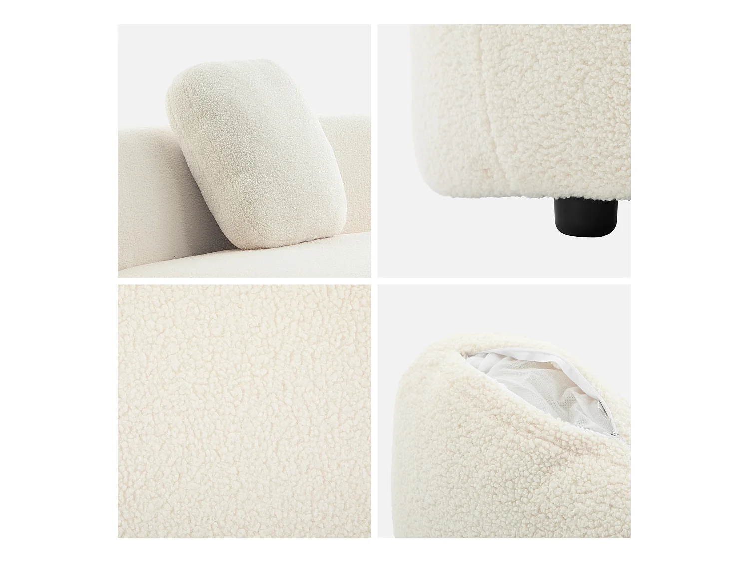 Sofá diseño redondeado con tejido borreguito de 3 plazas crema