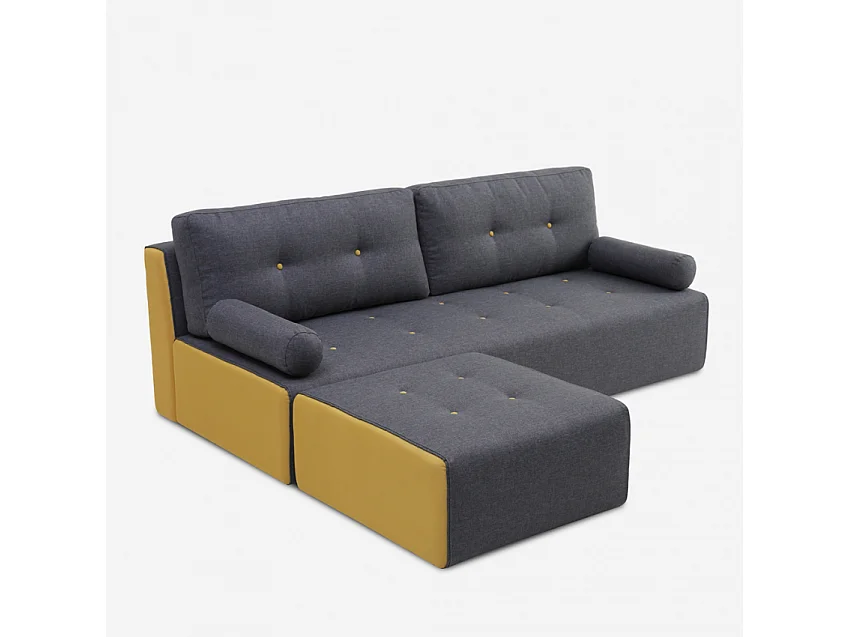 Sofá de 2-3 plazas en tela de estilo moderno con puf Luda