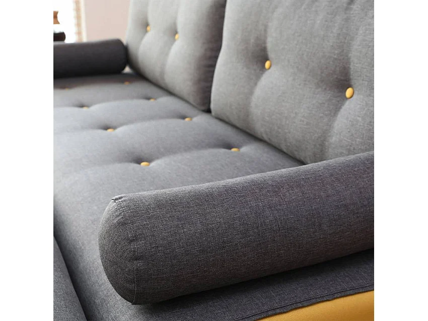 Sofá de 3 plazas esquinero estilo escandinavo con chaise longue en tela color gris Miles