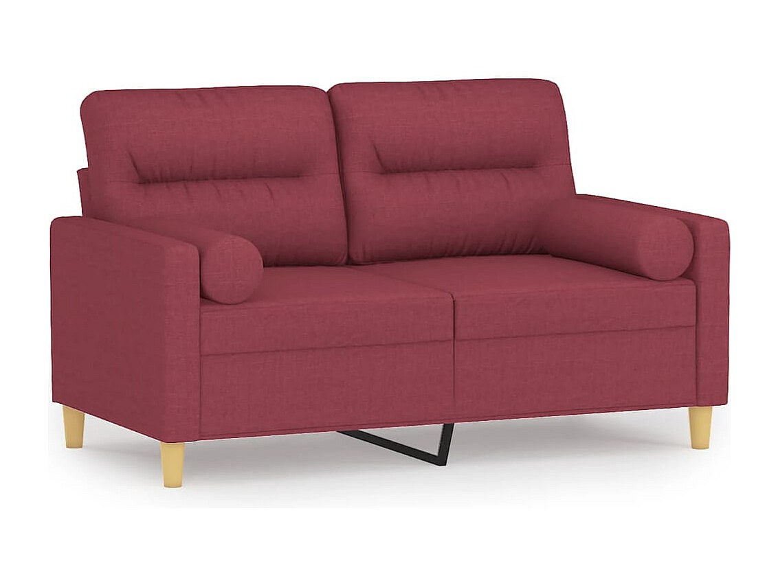 Sofá de 2 plazas con cojines burdeos de tela de 120 cm
