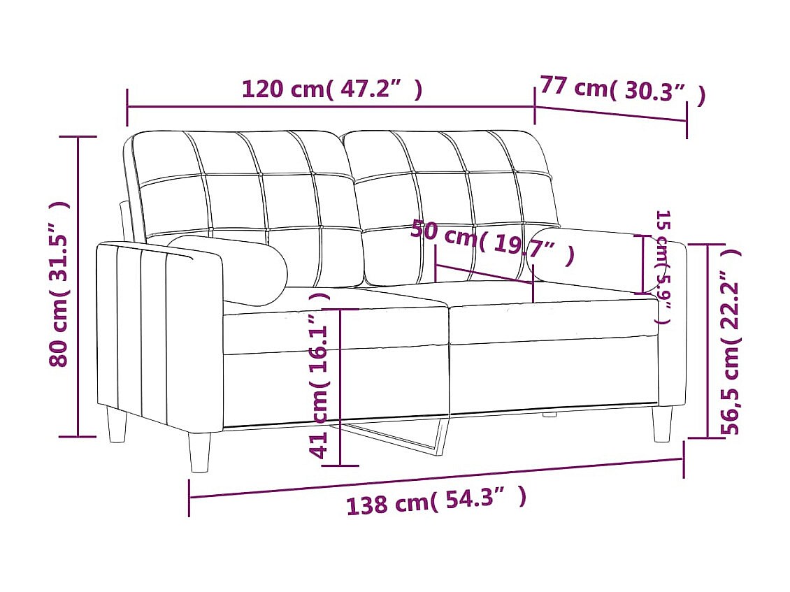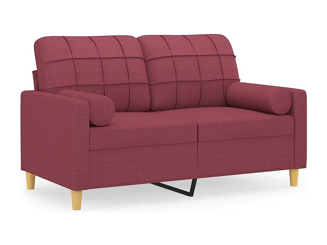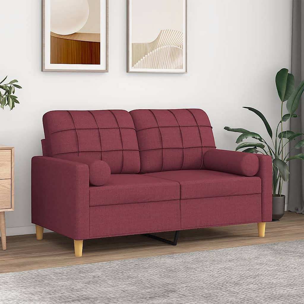 Sofá de 2 plazas con cojines burdeos de tela de 120 cm