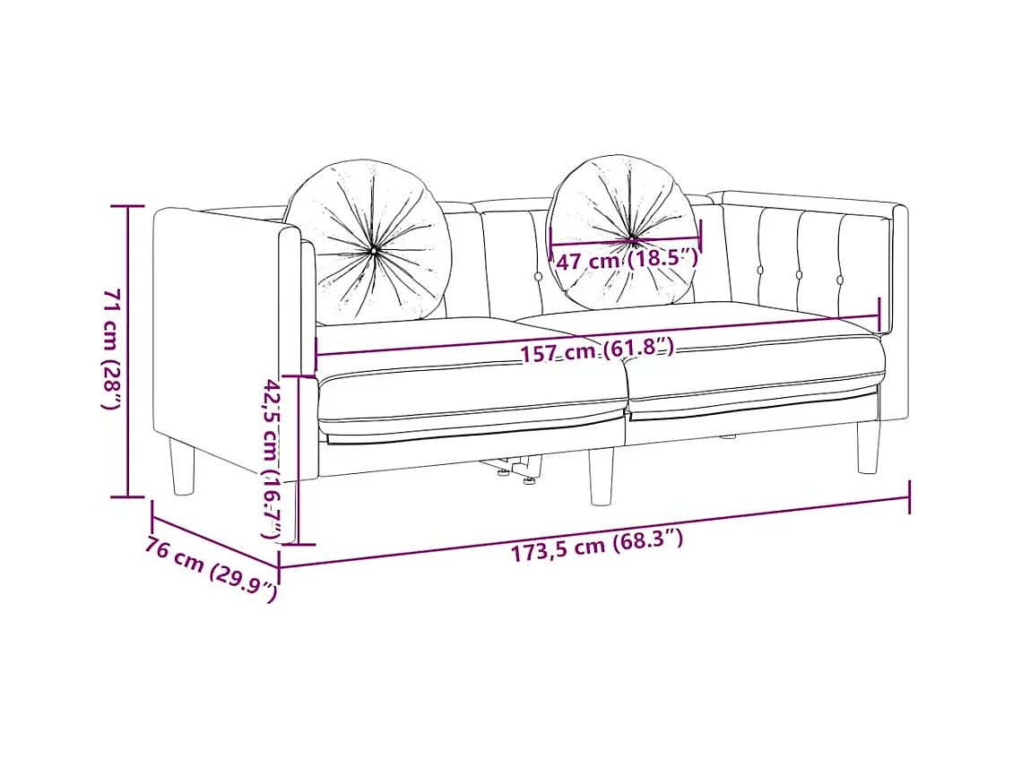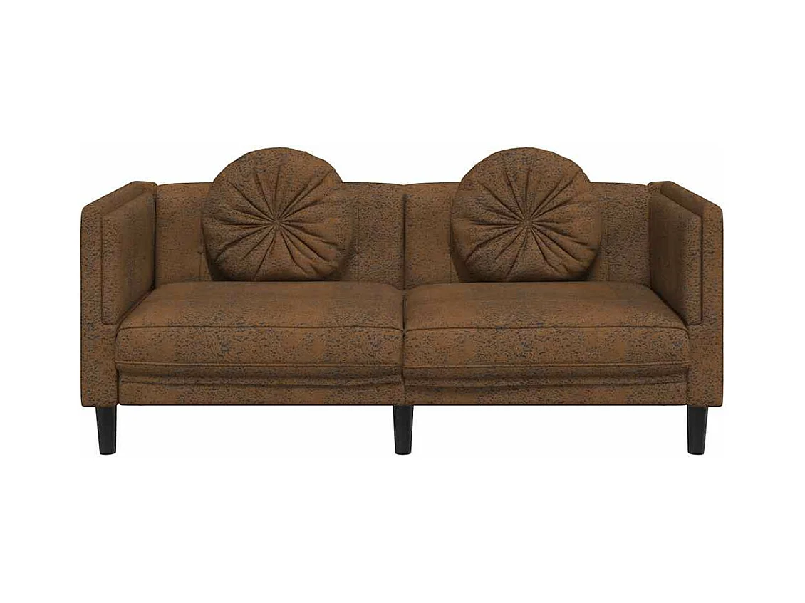 Sofá de 2 plazas con cojines cuero sintético de ante marrón