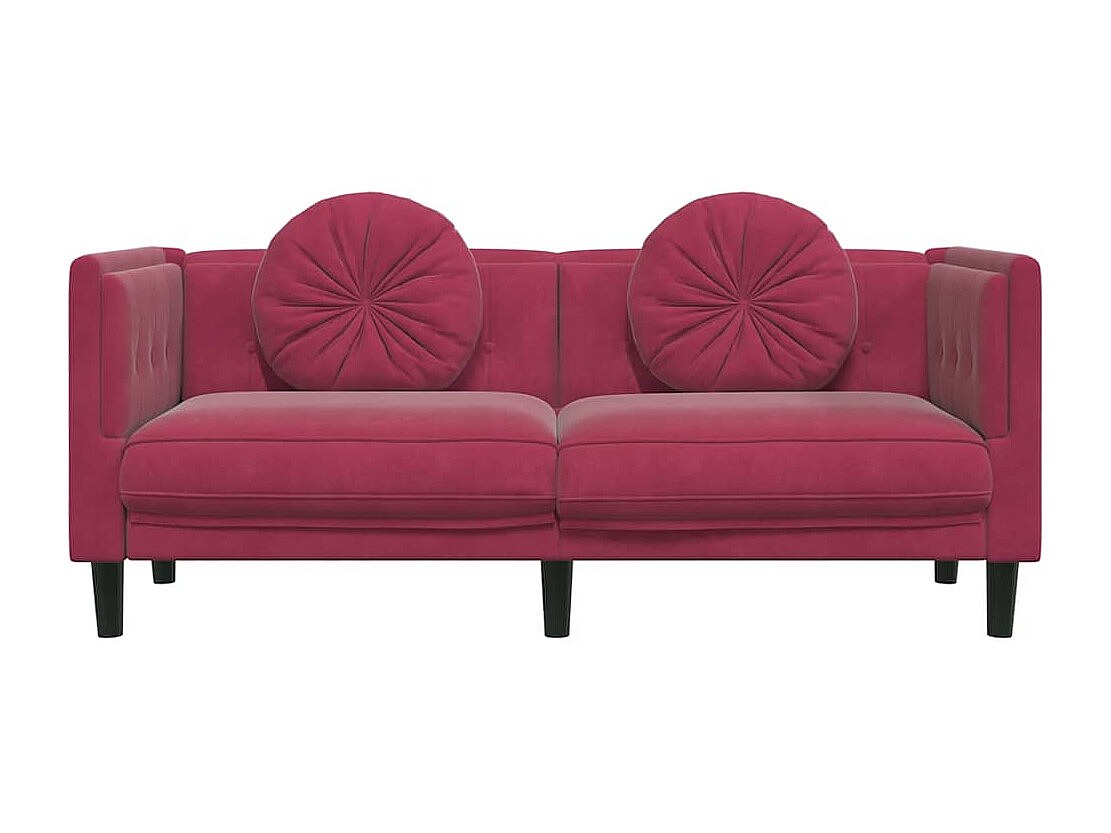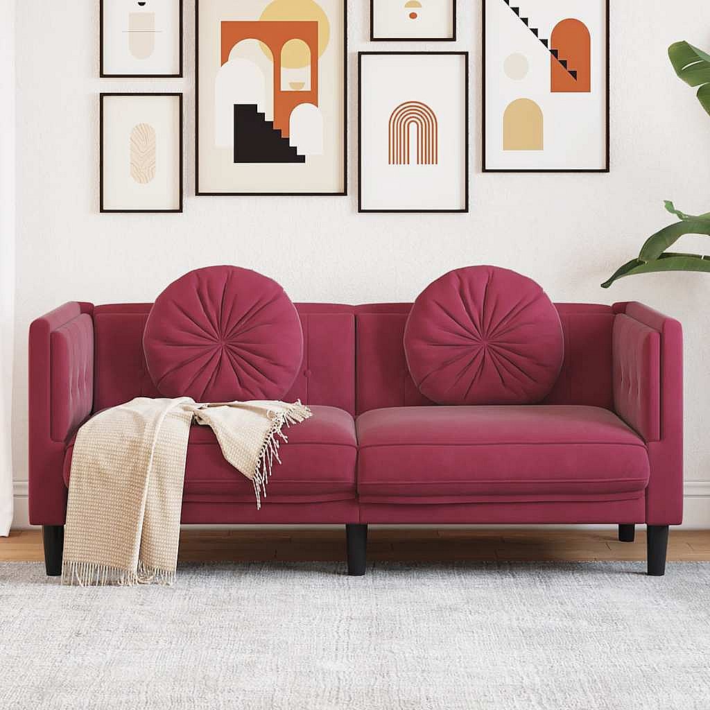 Sofá de 2 plazas con cojines de terciopelo rojo burdeos