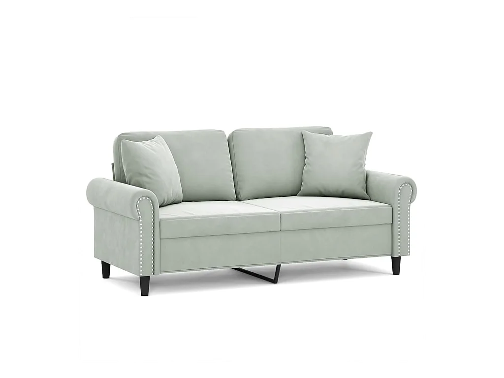 Sofá de 2 plazas con cojines gris claro de terciopelo de 140 cm