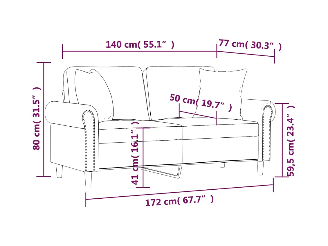 Sofá de 2 plazas con cojines gris oscuro de terciopelo de 140 cm