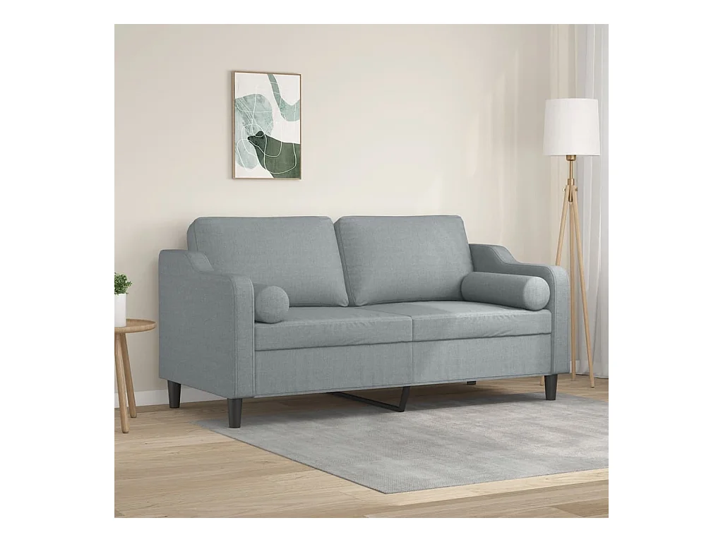 Sofá de 2 plazas con cojines tela gris claro 140 cm