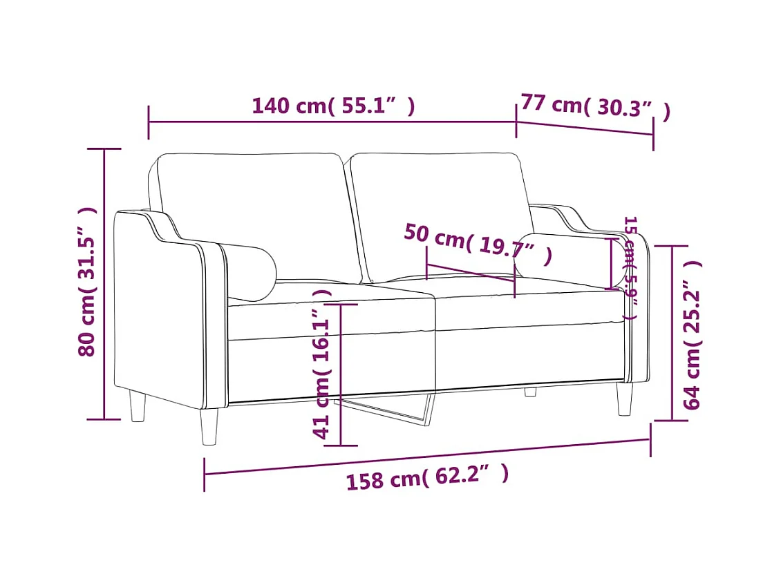 Sofá de 2 plazas de tela gris oscuro 140 cm