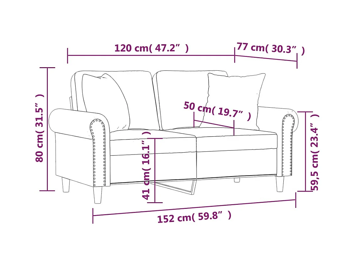 Sofá de 2 plazas con cojines terciopelo amarillo 120 cm