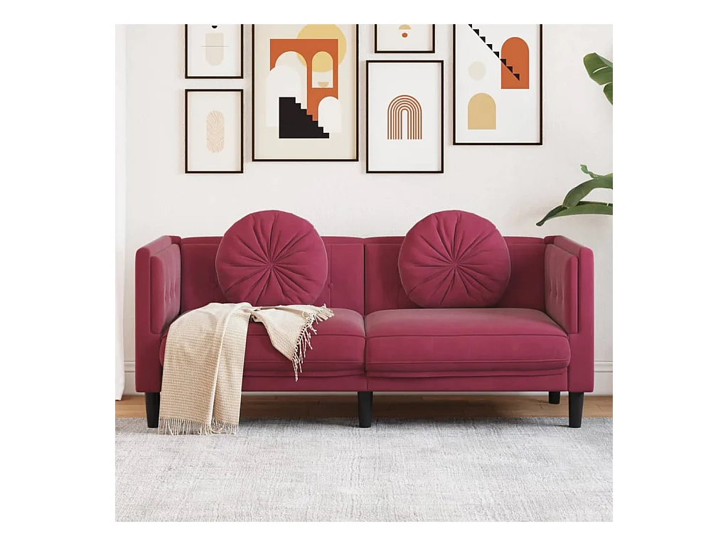 Sofá de 2 plazas con cojines terciopelo rojo tinto ES353259