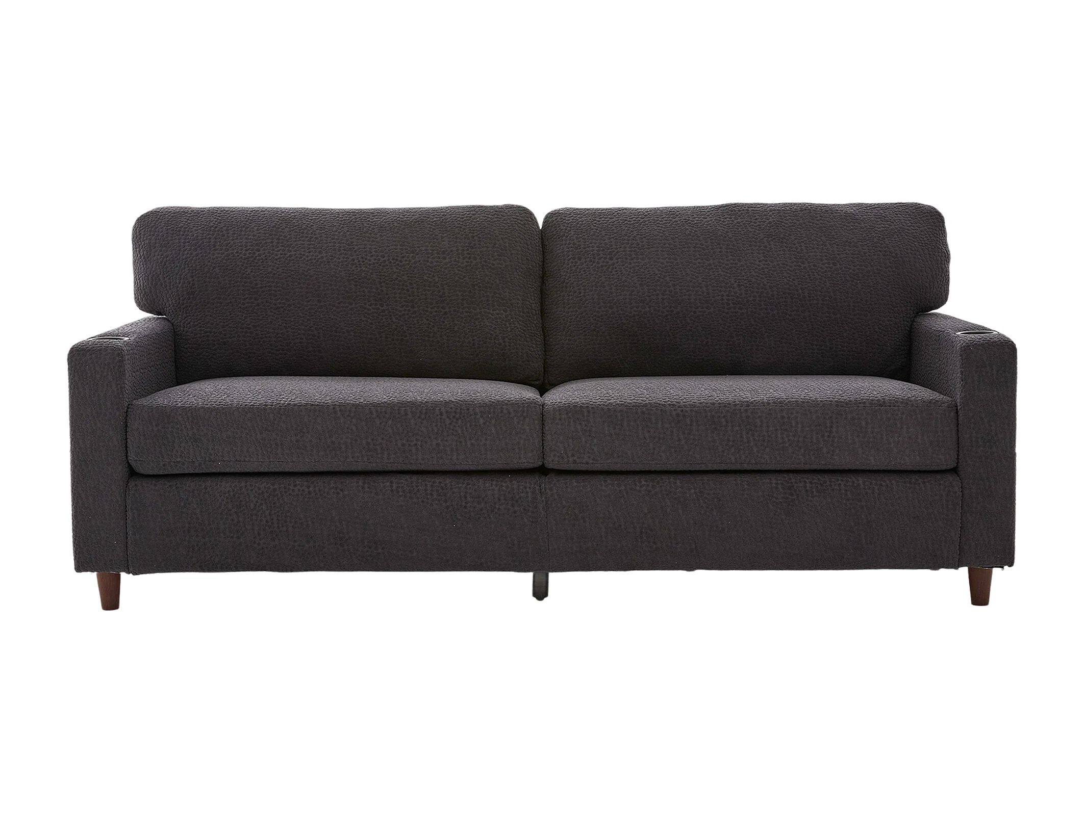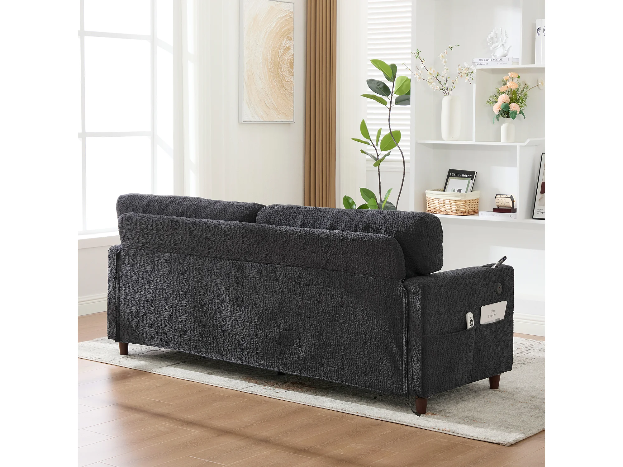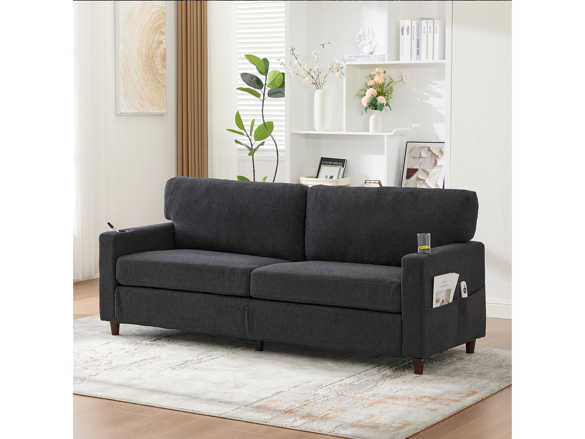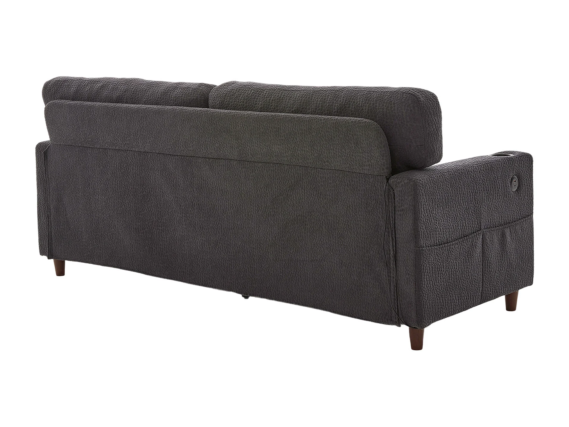 Sofá de 2 plazas con iluminación LED - Sofá recto con portavasos y bolsillos laterales - chenilla gris oscuro