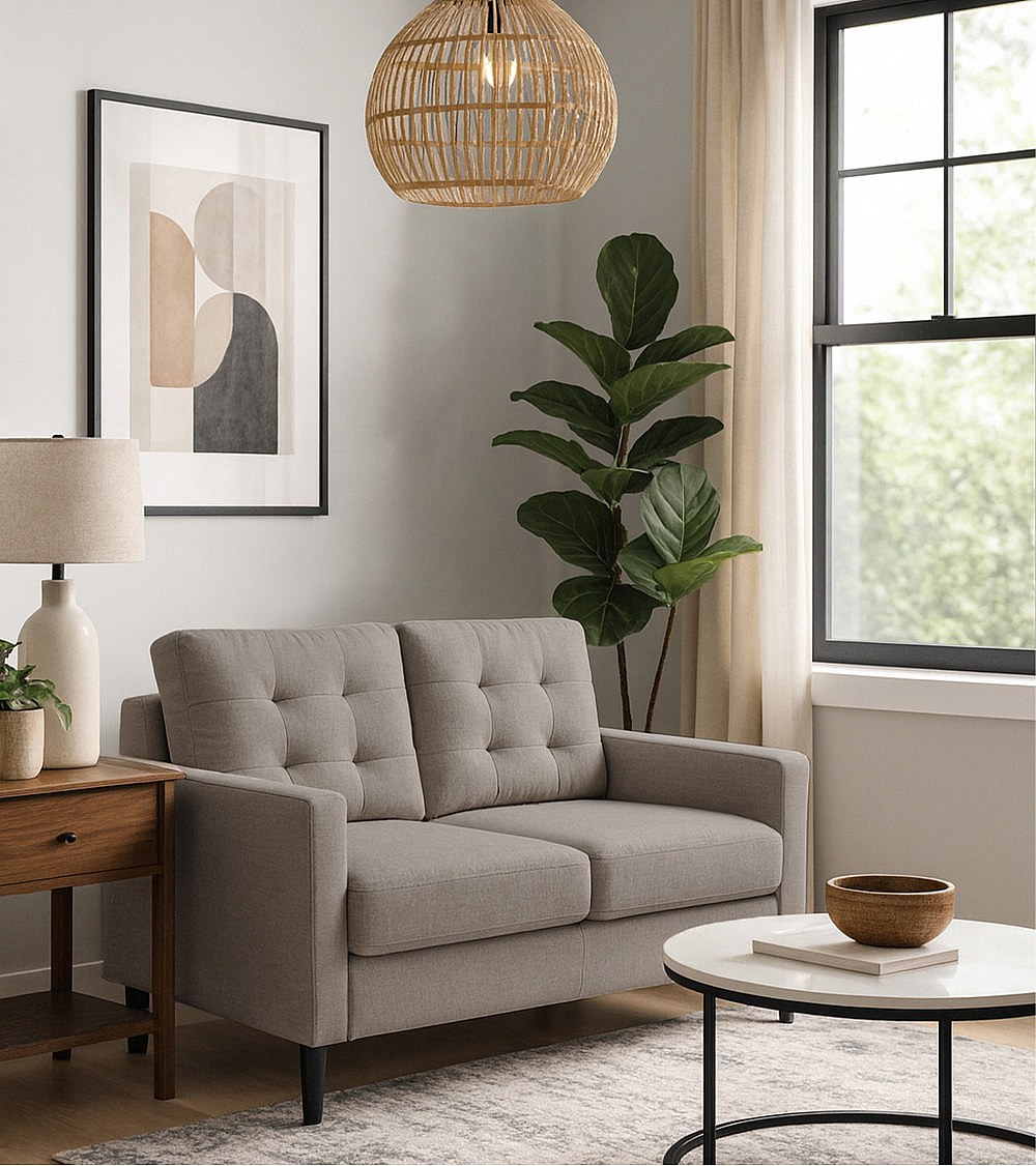 Sofá de 2 plazas de 86x140x76 cm con cojines desenfundables en color beige Dubi