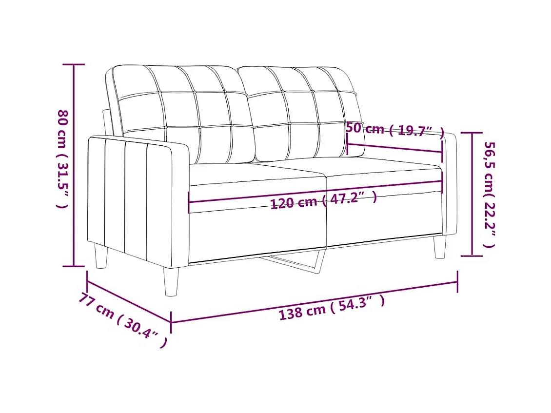 Sofá de 2 plazas con cojines tela negro 120 cm