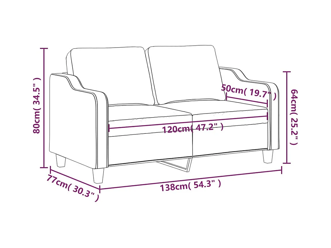Sofá de 2 plazas de tela marrón 120 cm